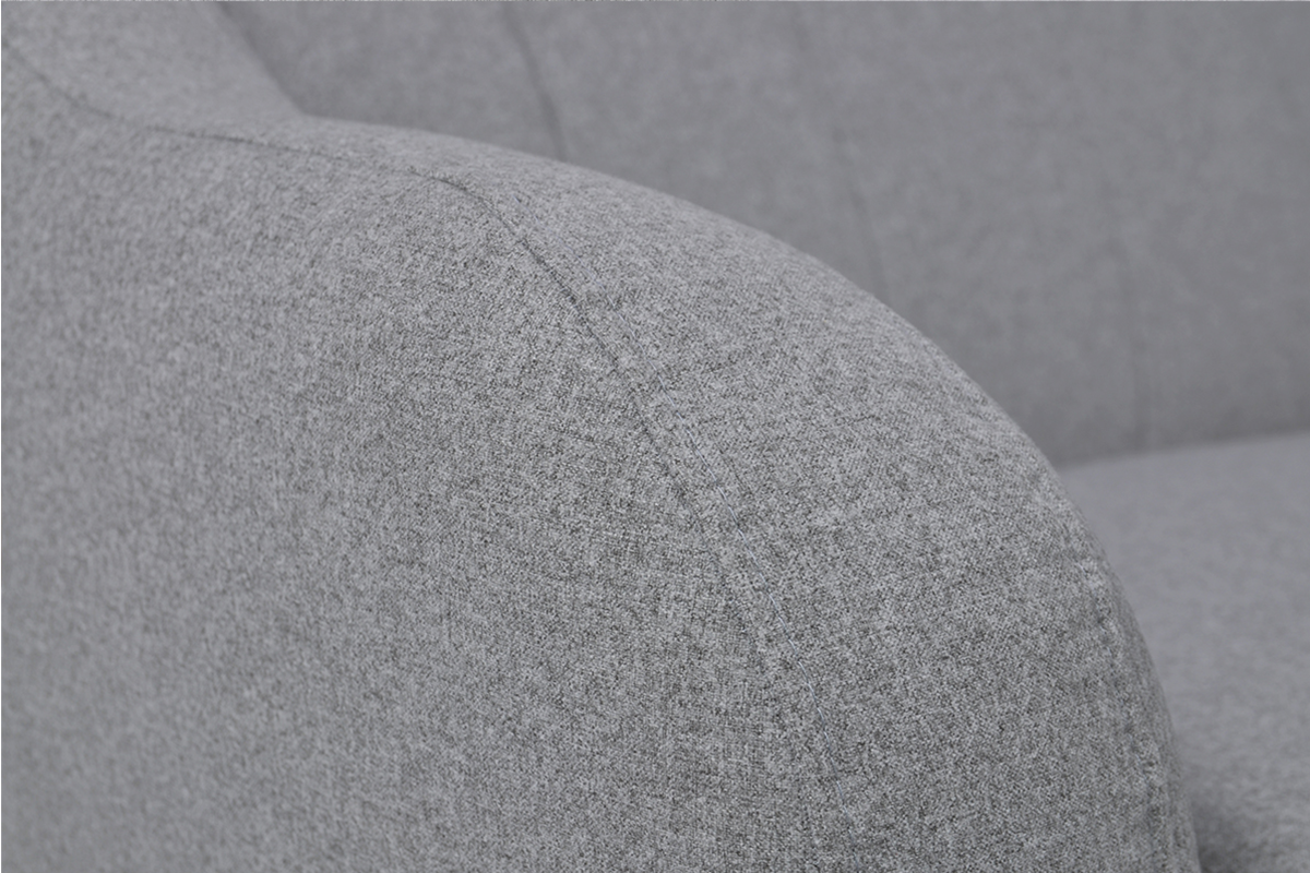 Das zweisitzige Sofa ist mit einem weichen, angenehm anzufassenden Polsterstoff bezogen, der eine erhöhte Beständigkeit gegen Verschmutzungen aufweist, um uns über viele Jahre hinweg gut zu dienen und dabei gleichbleibend gut auszusehen.