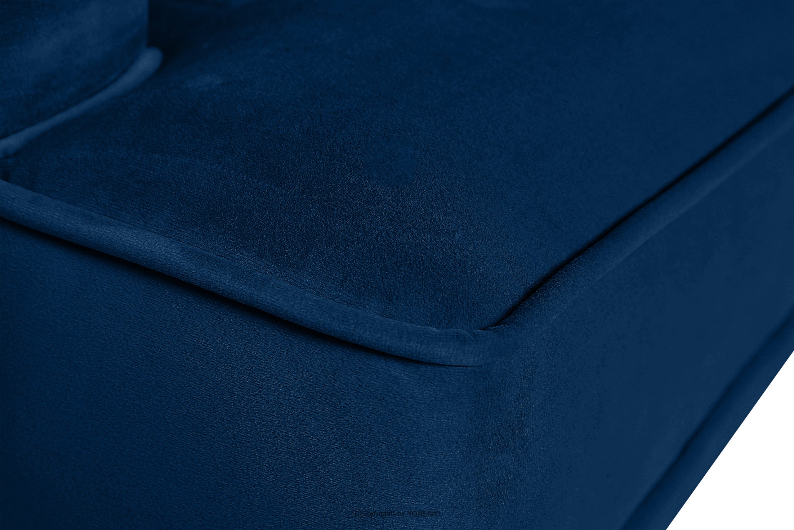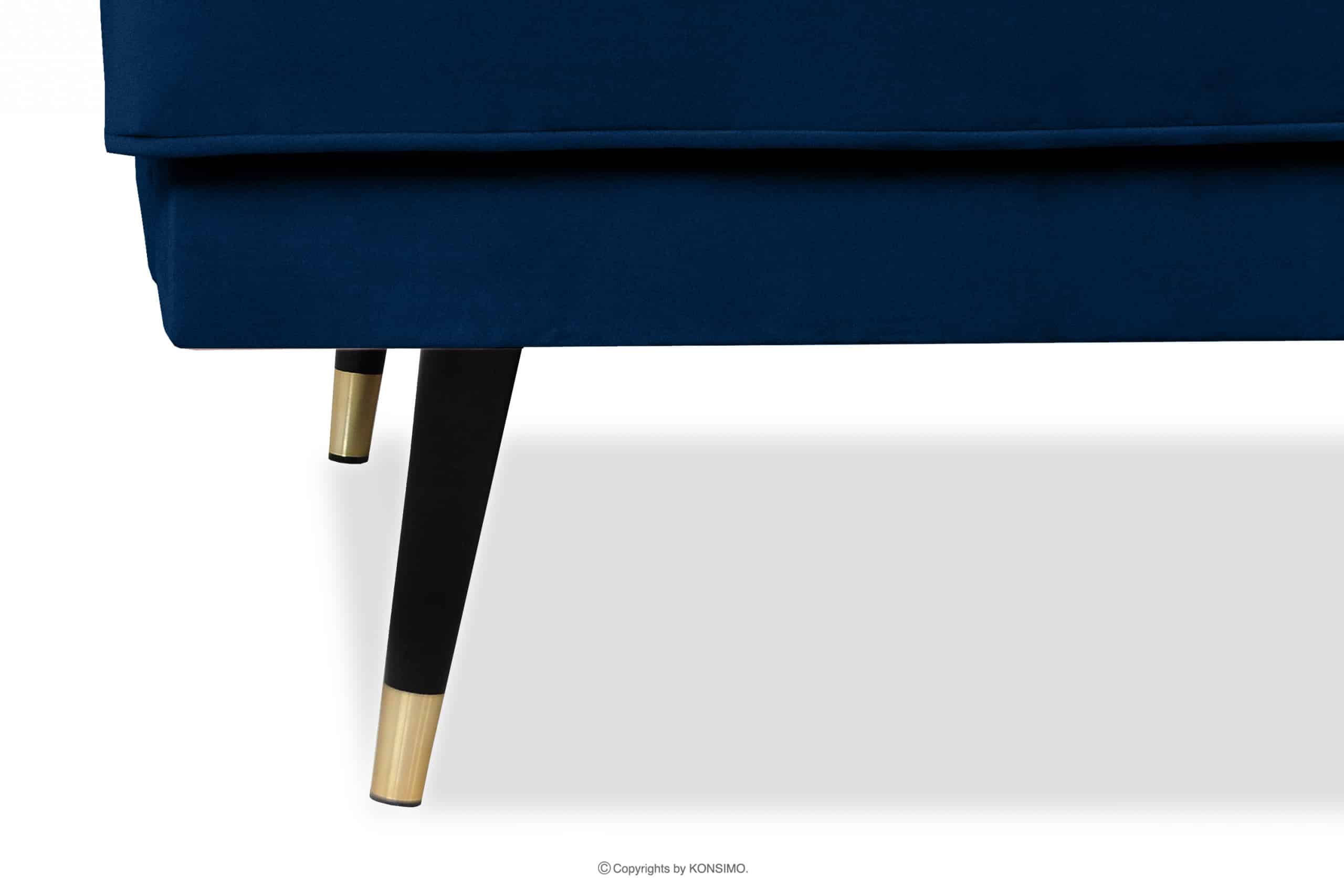 Die rechte Samt-Eckcouch FALCO in Marineblau ist ein besonders elegantes Möbelstück aus Samtstoff mit hohen Holzbeinen, die mit goldenen Metallkelchen enden. Der Stoff ist beständig gegen Pilling und Abrieb, was zu einer langen Lebensdauer der Eckcouch führt. Im Sitzbereich wurden wellenförmige Federn mit einer äußerst flexiblen und widerstandsfähigen Schaumstofffüllung verwendet.