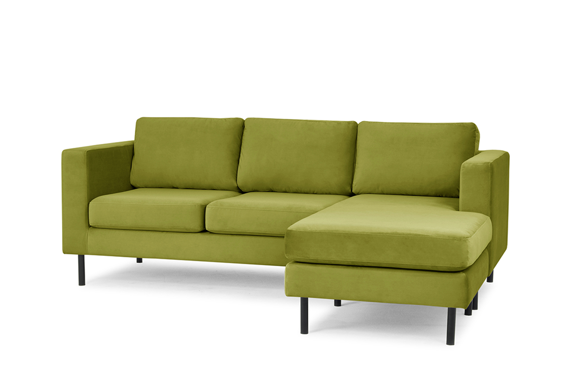 für das Produkt Ecksofa aus olivgrünem Velours mit Beinen rechts/links
