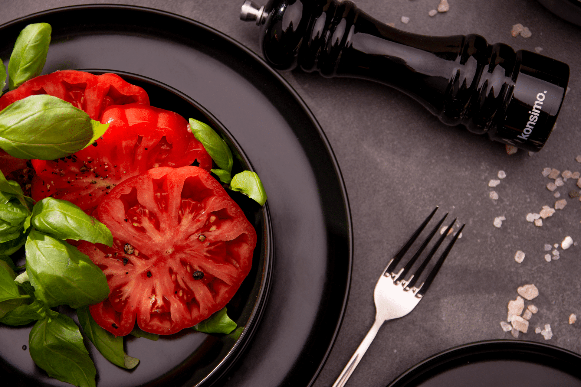 Das einfache, schwarze Speiseteller mit minimalistischem Design finden Sie im Konsimo-Angebot. Der Teller aus der VICTO-Kollektion zeichnet sich durch eine elegante, matte Oberfläche aus - wir achten sogar auf die kleinsten Details unserer Produkte. Das schlichte Design ermöglicht es, die gesamte Aufmerksamkeit auf das zubereitete Essen zu richten, sodass man seinen Geschmack und sein Aroma vollständig genießen kann.