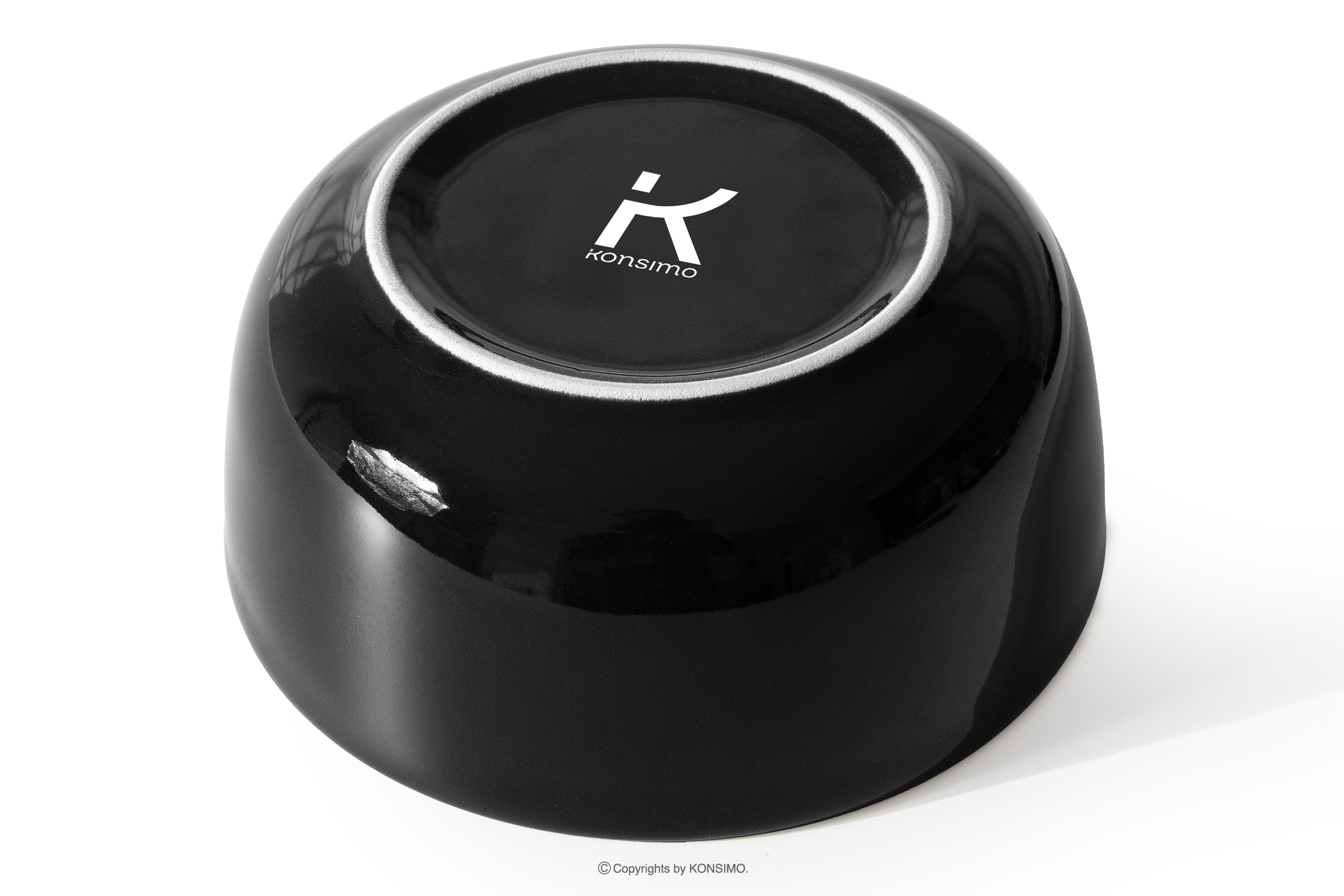 Die schwarze, glänzende Schale, die aus Keramik höchster Qualität gefertigt ist, zieht die Aufmerksamkeit durch ihre außergewöhnliche Eleganz und ihre unbestreitbare Widerstandsfähigkeit gegen mögliche Beschädigungen auf sich. Die glänzende Oberfläche und die minimalistische, runde Form verleihen ihr einen einzigartigen Charakter, so dass sie sowohl zu modernen Loft-Einrichtungen als auch zu traditionellen Esszimmern passt.