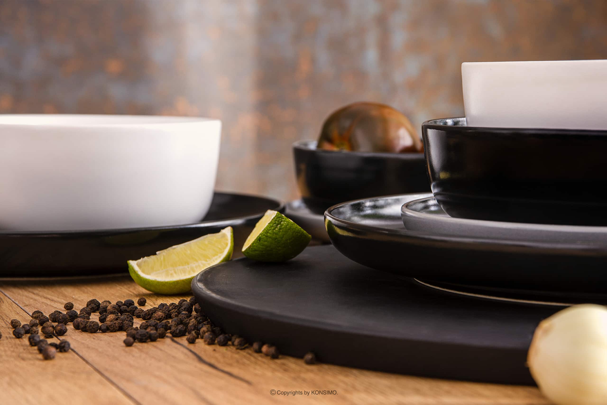 VICTO Modernes Tafelservice 6-Personen-Set 24-teilig schwarz/grau/weiß/schwarz