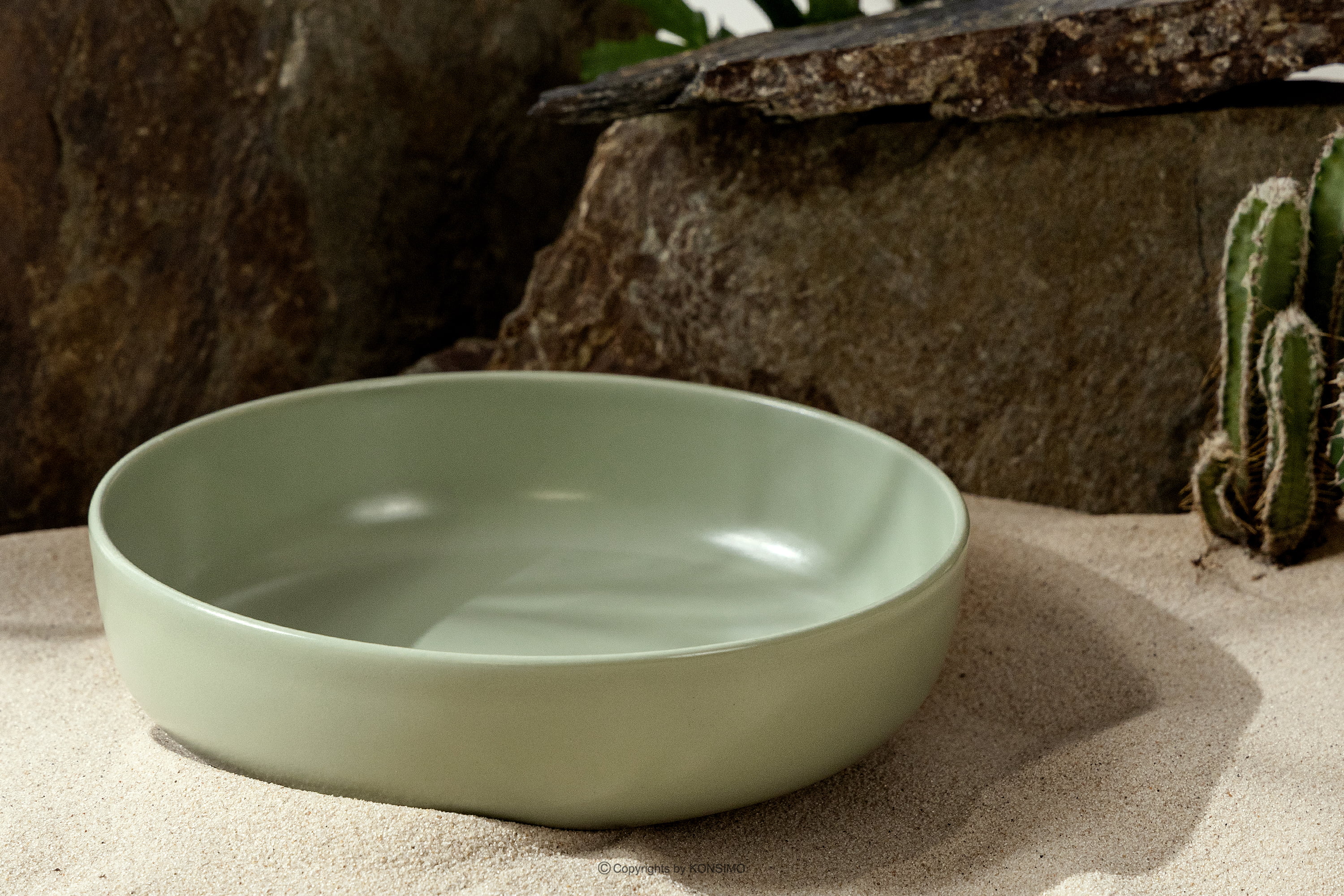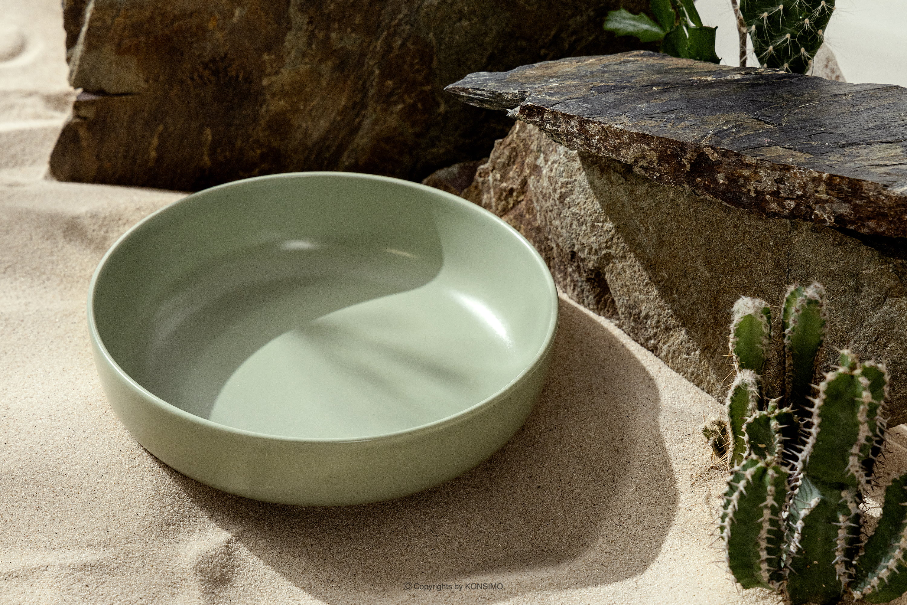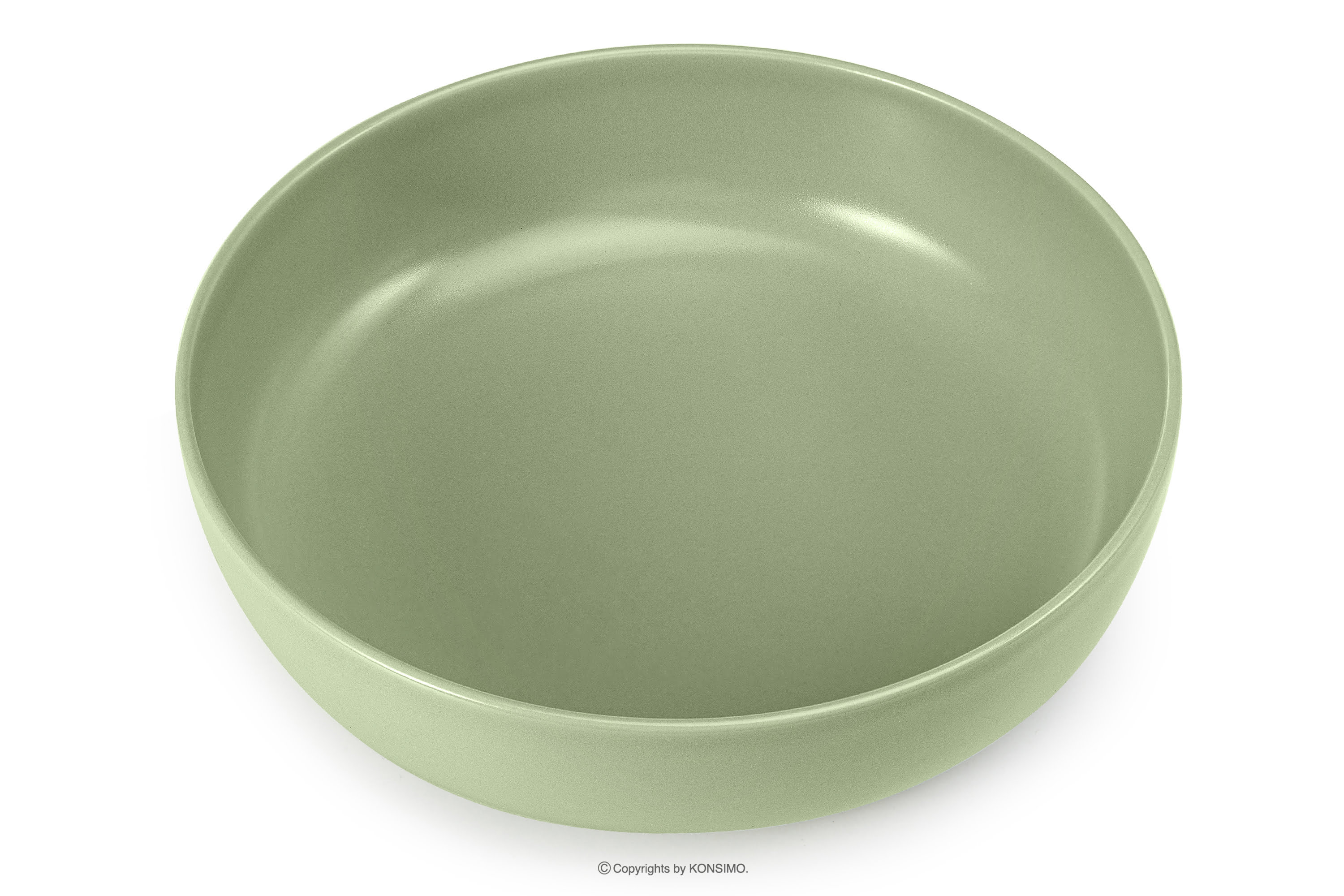 Pistazien-Tafelservice 6-Personen (12 tlg.), hergestellt aus Keramik höchster Qualität, besticht durch seine außergewöhnliche Eleganz und seine unbestreitbare Widerstandsfähigkeit gegen mögliche Beschädigungen. Die matte Oberfläche und die minimalistischen, runden Formen verleihen ihm einen einzigartigen Charakter, der sowohl zu modernen Loft-Einrichtungen als auch zu traditionellen Esszimmereinrichtungen passt. Diese ungewöhnliche Kombination aus Stil und Funktionalität macht dieses Set zur perfekten Wahl für einen eleganten Esstisch bei formellen Anlässen und im Alltag, wo es außergewöhnlichen Geschmack und Lebensstil unterstreicht.