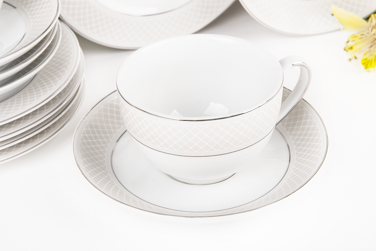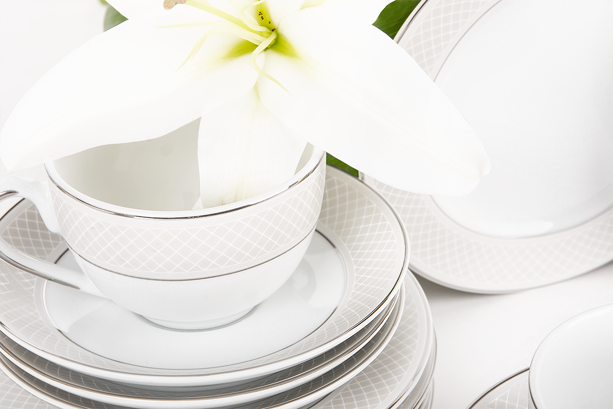 SCANIA Mehr aus der Kollektion Teeservice aus polnischem Porzellan 12-teilig weiß / platinfarben für 6 Personen- Farbe platin
