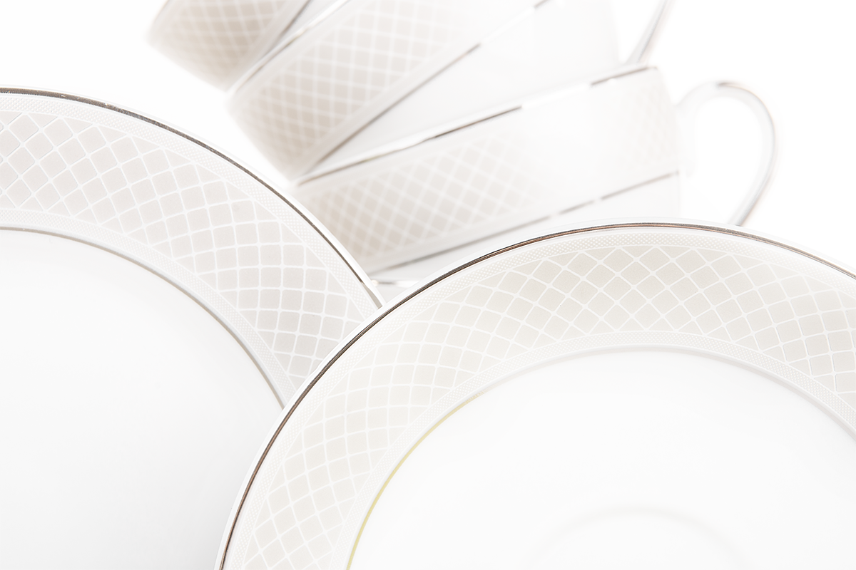 für das Produkt Teeservice aus polnischem Porzellan 12-teilig weiß / platinfarben für 6 Personen