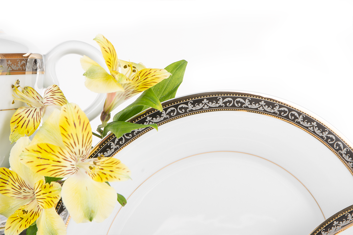 Die Porzellankollektion Conte ist in einem schönen Weiß gehalten, während die spiegelnden Verzierungen in warmen und eleganten Farben ihr einen herrschaftlichen Charakter verleihen. Die traditionellen Formen sind ein Vorteil und machen es Ihnen sowohl bei einem eleganten Abendessen als auch bei informelleren Treffen angenehm, diese Geschirr zu benutzen. Die Kollektion besteht aus hochwertigem Porzellan, sodass sie über viele Jahre hinweg den Tisch schmücken oder die verglasten Vitrinen mit Charme füllen wird.
