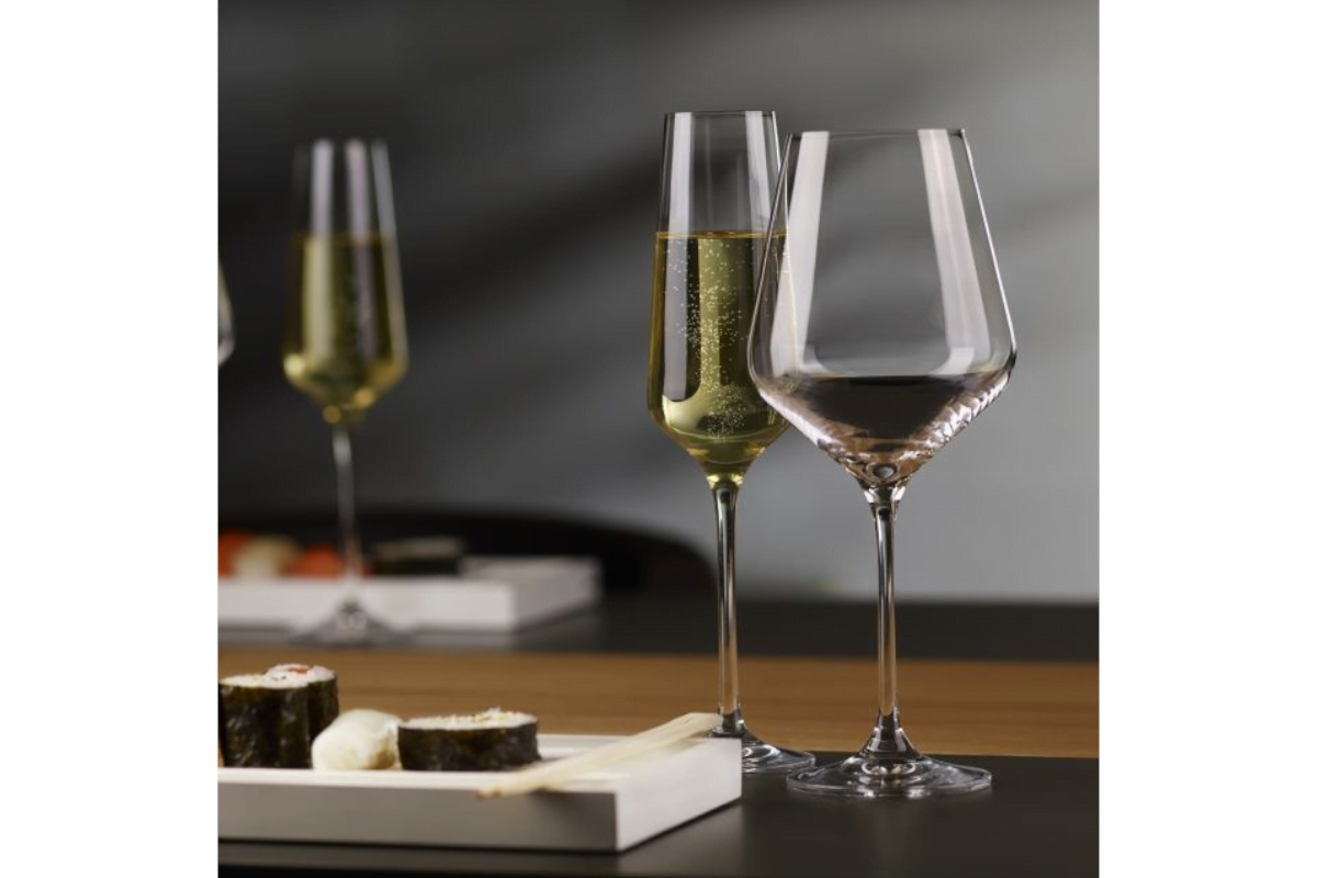 Champagnergläser eignen sich hervorragend für die Verkostung der raffiniertesten Getränke. Die elegante Form wird echte Kenner begeistern. Der hohe Stiel ist mit einem schlanken Kelch versehen, damit die Bläschen das Glas langsam verlassen und nach und nach das volle Aroma des Champagners freisetzen. Das perfekt transparente Crystalline-Glas streut das Licht wunderschön und erzeugt einen einzigartigen visuellen Effekt.