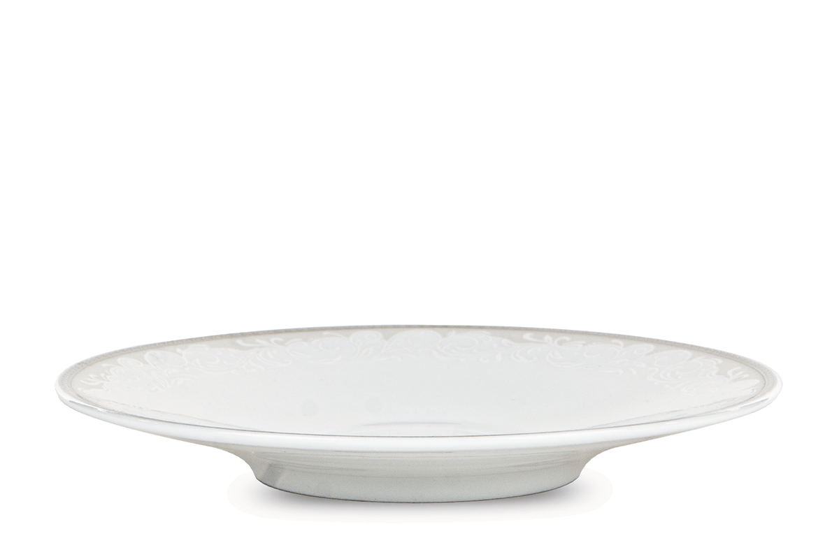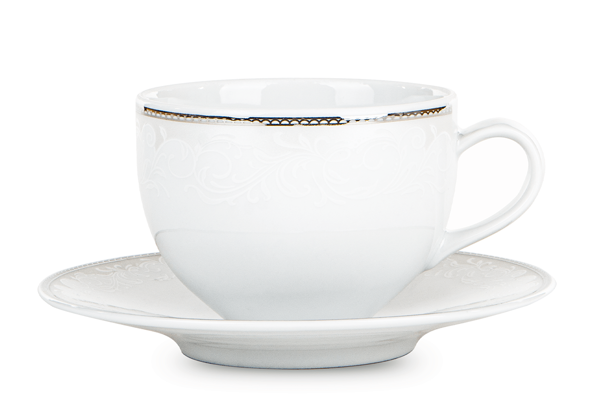 Die zarte AMELIA LUIZA Porzellankollektion zeichnet sich durch originelle, aber klassische Verzierungen aus. Die platinbeschichteten Linien sind nur teilweise mit geschwungenen Linien gefüllt und glänzend ausgeführt und in Kombination mit dreidimensionalen Pflanzenmustern in Weiß erhält das Ganze einen subtilen Charakter. Darüber hinaus ist das Porzellan robust und solide verarbeitet, so dass Sie es jahrelang ohne Verlust der visuellen Eigenschaften nutzen können.