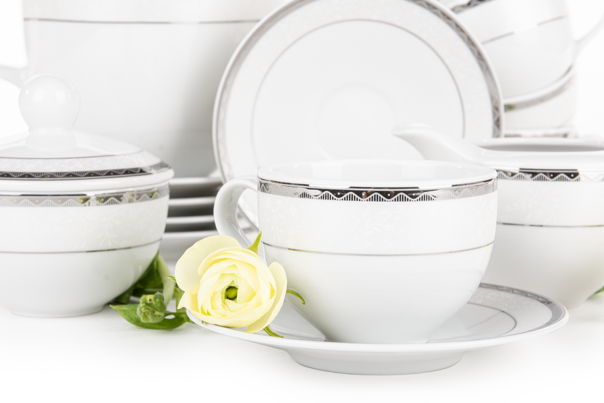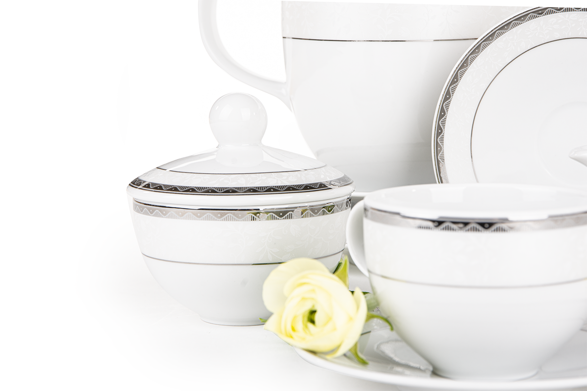 AMELIA PLATIN Porzellan-Kaffeegeschirr 9-teilig weiß / platin für 6 Personen