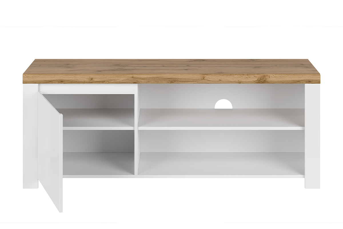 DAMINO Mehr aus der Kollektion TV-Schrank mit Einlegeböden für ein Wohnzimmer 150 cm weiß / Eiche- Farbe weiß glänzend/ eiche wotan