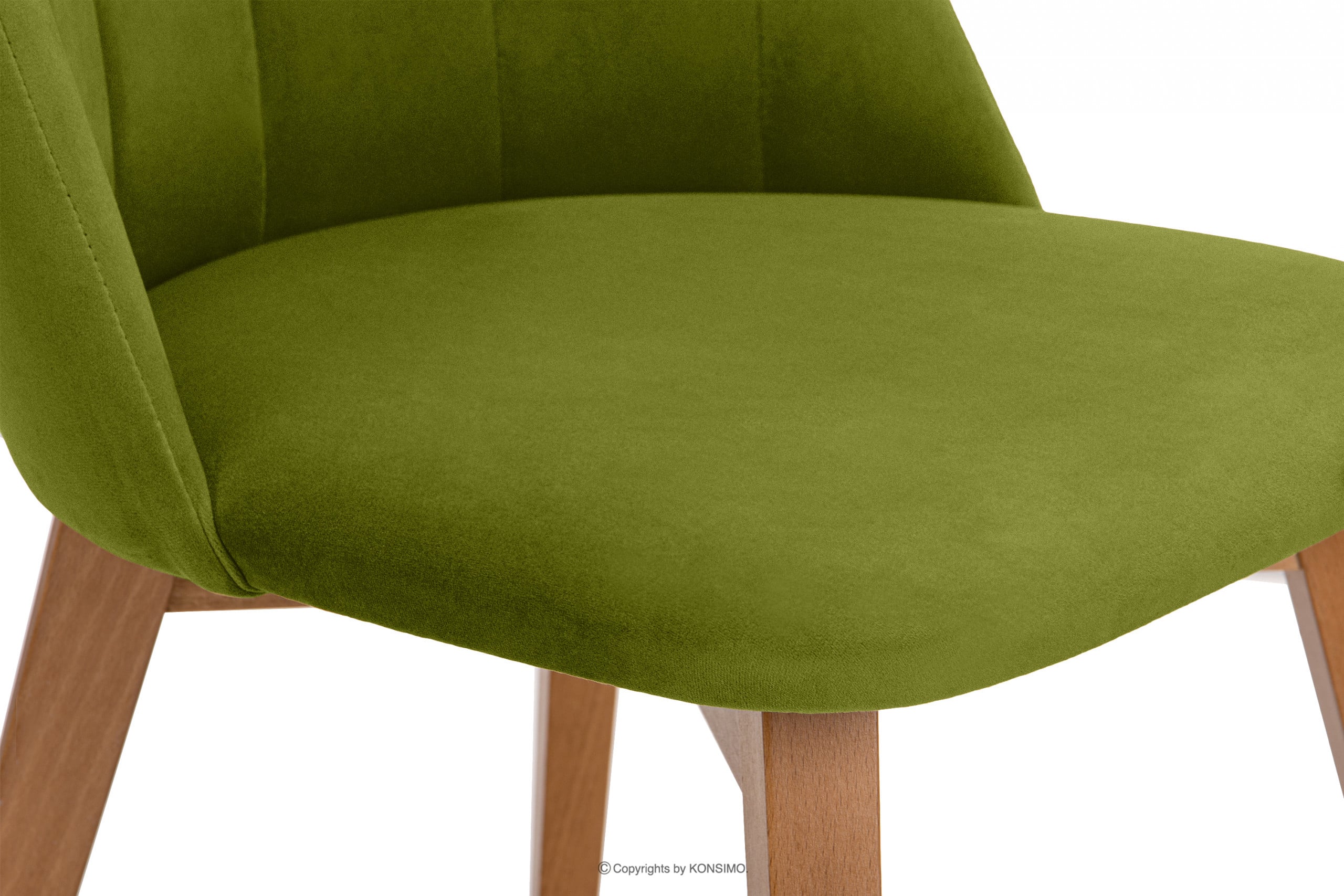 Ein eleganter Stuhl, der zeitloses Design mit außergewöhnlichem Komfort verbindet. Mit Velours bezogen, der sich äußerst angenehm anfühlt und in einer Vielzahl von Farben erhältlich ist, die zu verschiedenen Einrichtungsstilen passen. Die soliden Beine aus massivem Buchenholz garantieren Stabilität und Langlebigkeit und verleihen dem Möbelstück gleichzeitig einen natürlichen Charakter. Die bequeme Sitzfläche und Rückenlehne, gefüllt mit Polyurethanschaum T-30 und 40 / T-25 und 170, sorgen für ideale Elastizität und lang anhaltenden Sitzkomfort.