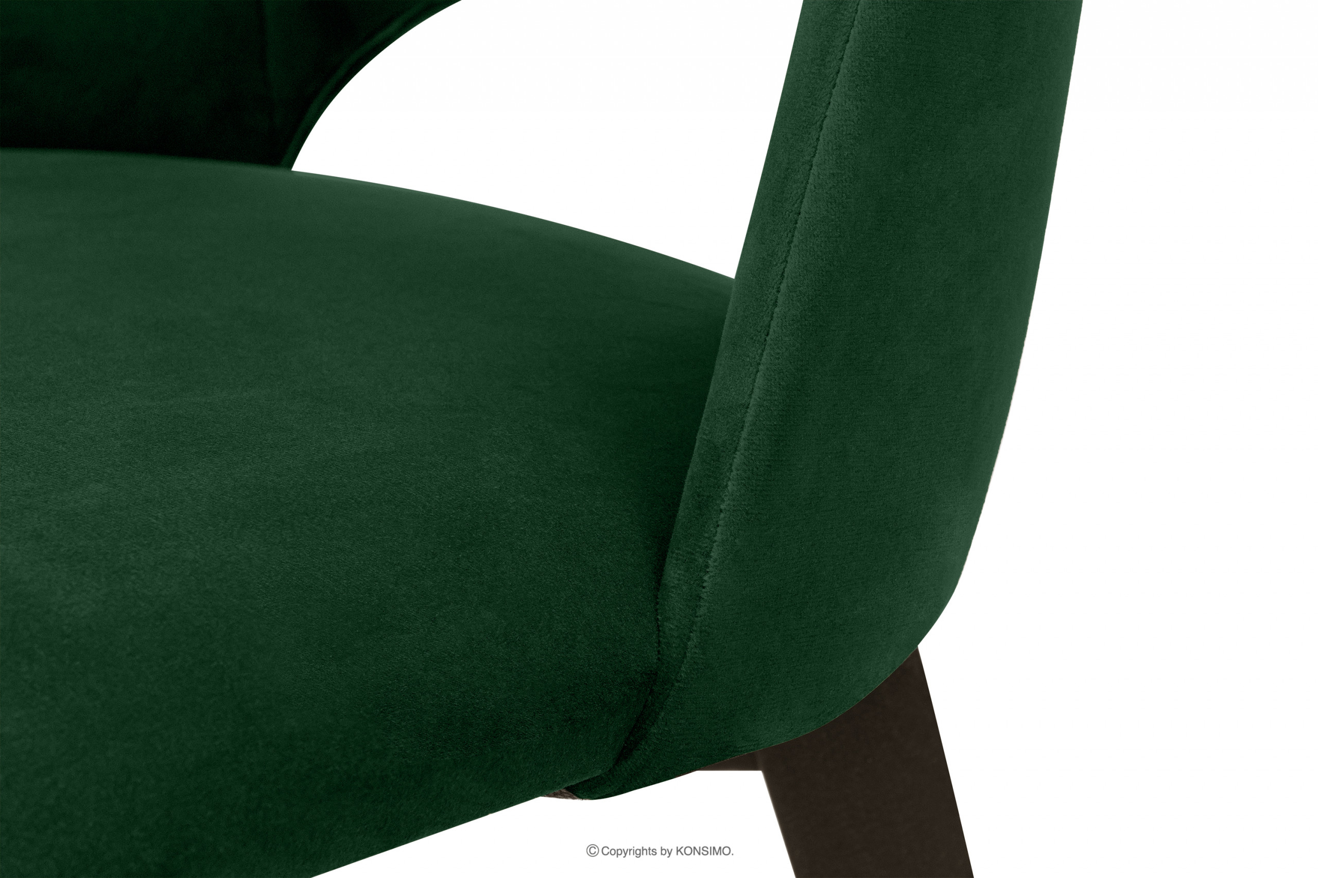 Einzigartiger gepolsterter Stuhl mit Beinen aus massivem Buchenholz. Rückenlehne und Sitzfläche sind mit Polyurethanschaum T-30 und 40 / T-25 und 170 gefüllt und mit weichem Velours bezogen, der Komfort und Eleganz garantiert. Naturholz in Kombination mit hochwertigen Polstern bildet ein harmonisches Ganzes, das sich in jeden Innenraum einfügt. Perfekt für Liebhaber der Verbindung von Tradition und Moderne.