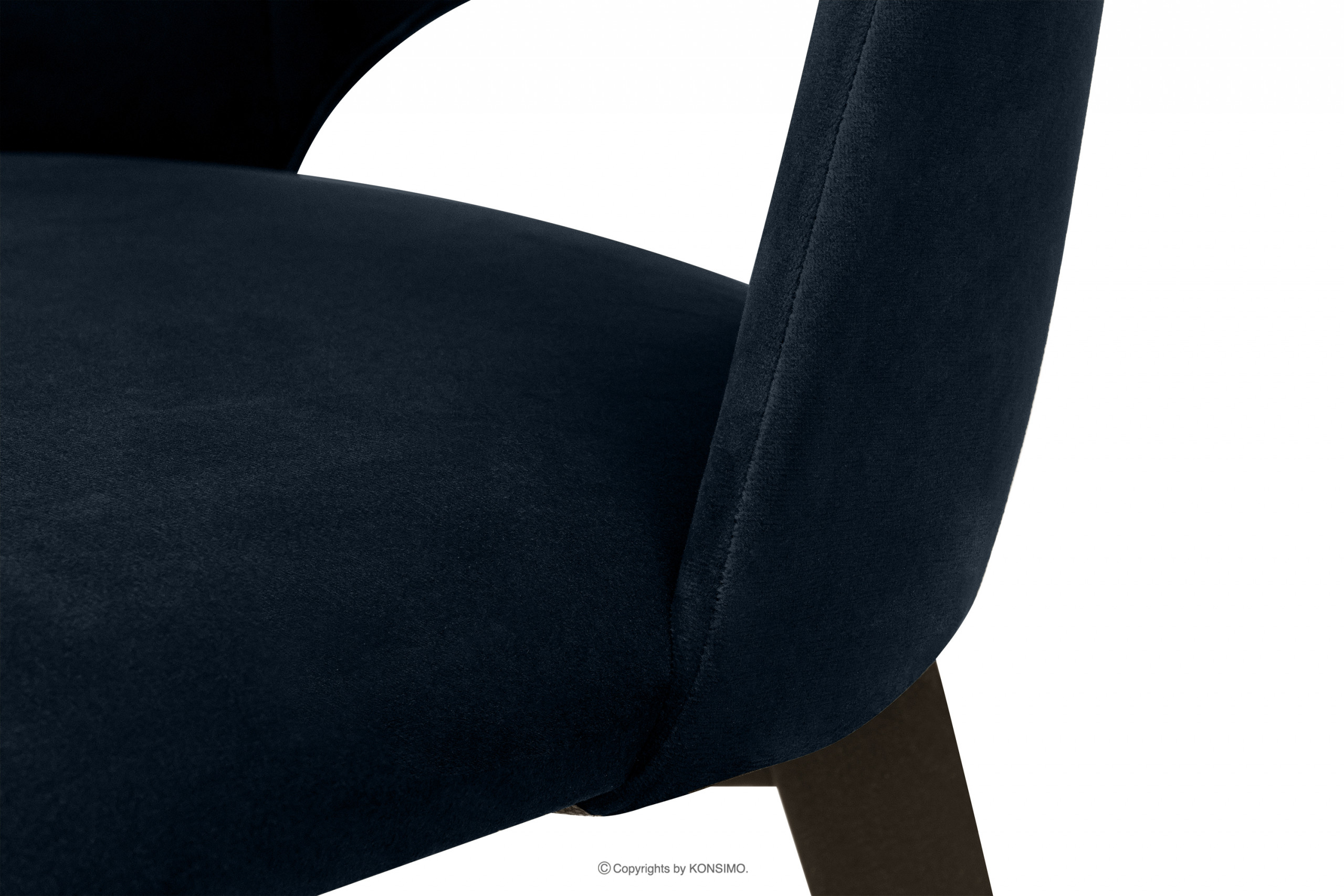 Einzigartiger gepolsterter Stuhl mit Beinen aus massivem Buchenholz. Rückenlehne und Sitzfläche sind mit Polyurethanschaum T-30 und 40 / T-25 und 170 gefüllt und mit weichem Velours bezogen, der Komfort und Eleganz garantiert. Naturholz in Kombination mit hochwertigen Bezügen bildet ein harmonisches Ganzes, das sich in jedes Interieur einfügt. Perfekt für Liebhaber der Verbindung von Tradition und Moderne.