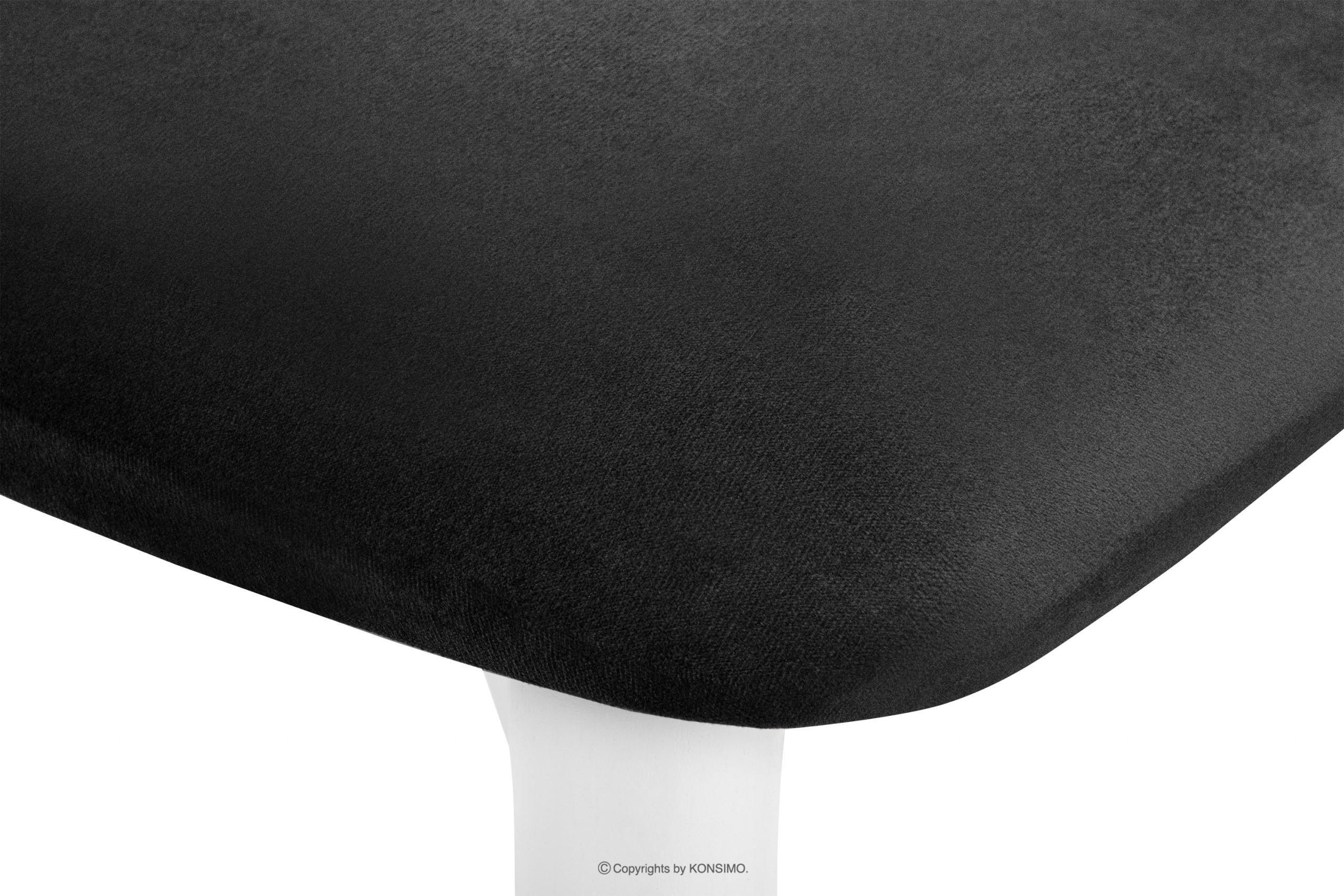 Der Stuhl RABI ist vor allem ein Klassiker. Er knüpft an den Retro-Stil an, dank der Kombination von schwarzem Samt und einem weißen Gestell. Er ist aus massivem Holz gefertigt, das auch bei täglichem Gebrauch viele Jahre lang hält. Das geschwungene Rückenlehne ist nicht nur eine Verzierung, sondern auch sehr bequem.