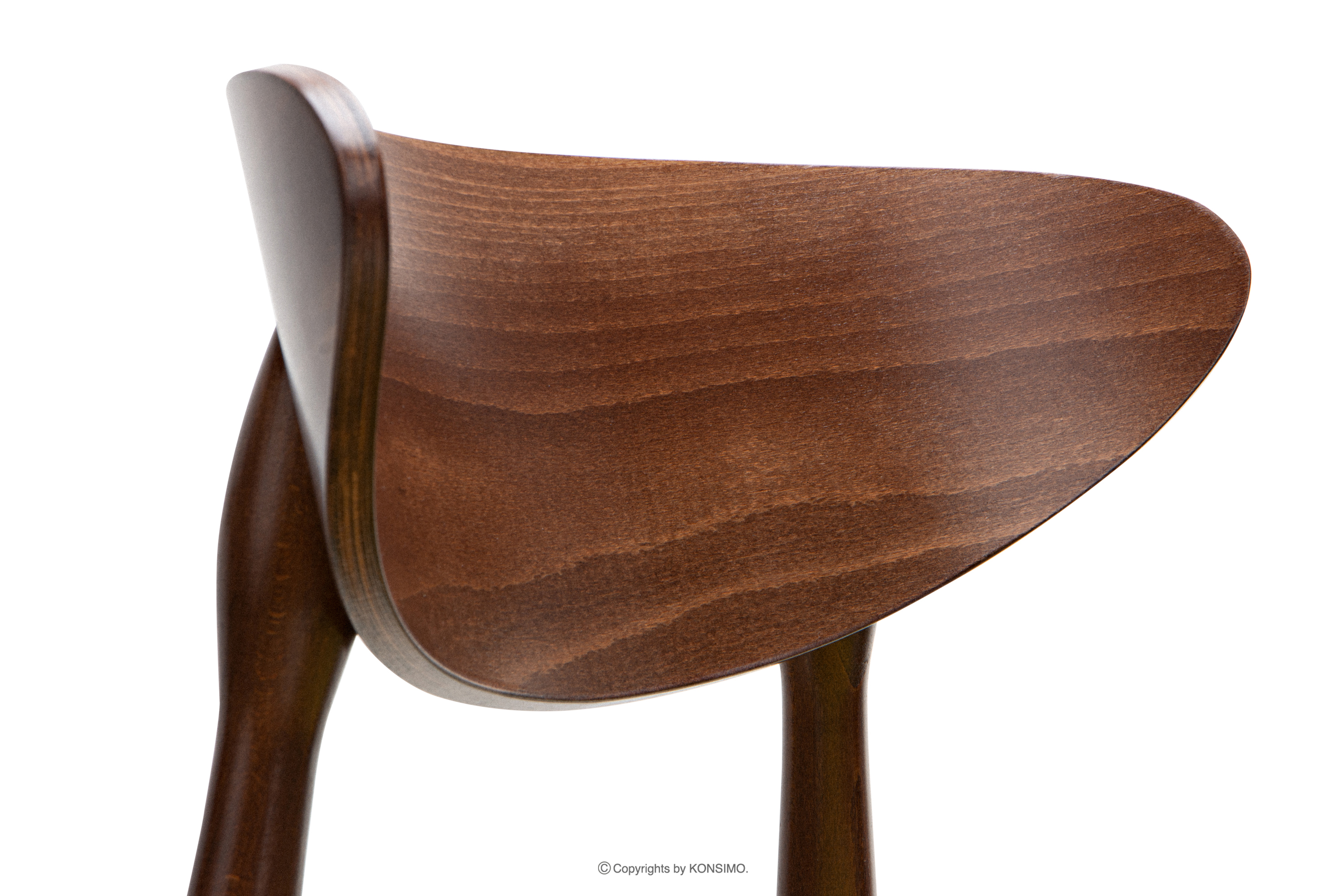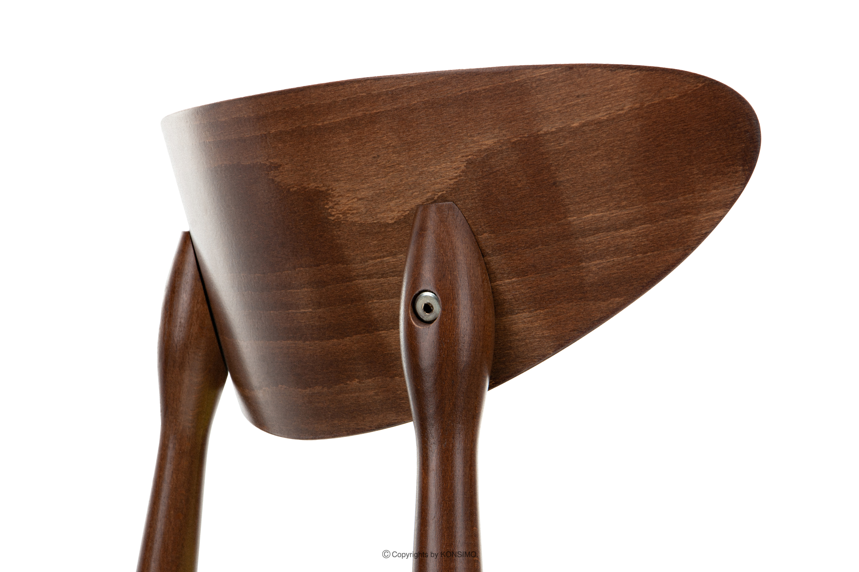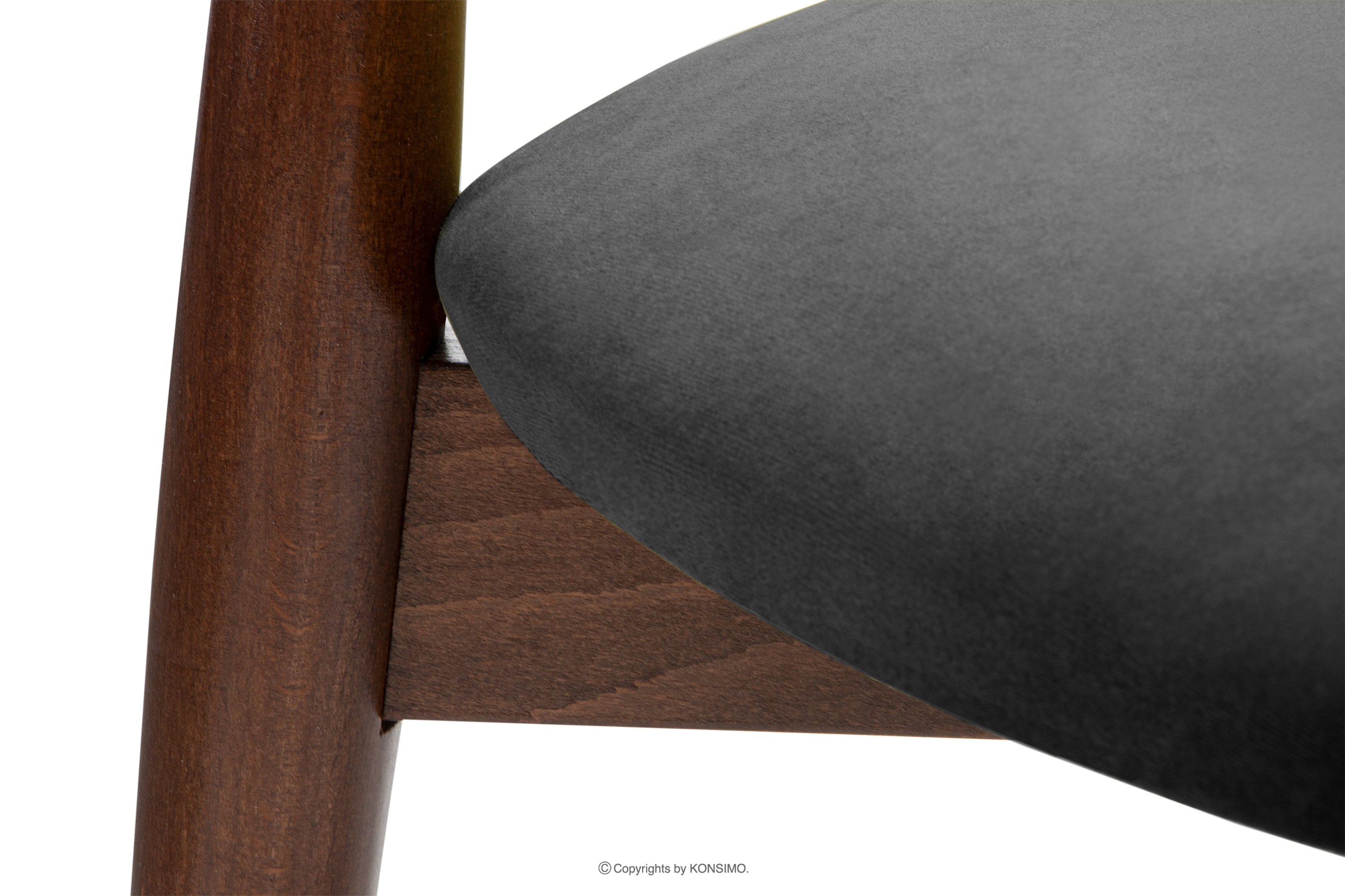 Der Stuhl RABI ist vor allem ein Klassiker. Er erinnert an den Retro-Stil durch die Kombination von schwarzem Velours und einem Gestell in Nussbaumfarbe. Er ist aus massivem Holz gefertigt, das auch bei täglichem Gebrauch viele Jahre lang hält. Optisch besticht er durch seine geschwungene Rückenlehne, die nicht nur das Möbelstück schmückt, sondern auch sehr bequem ist.
