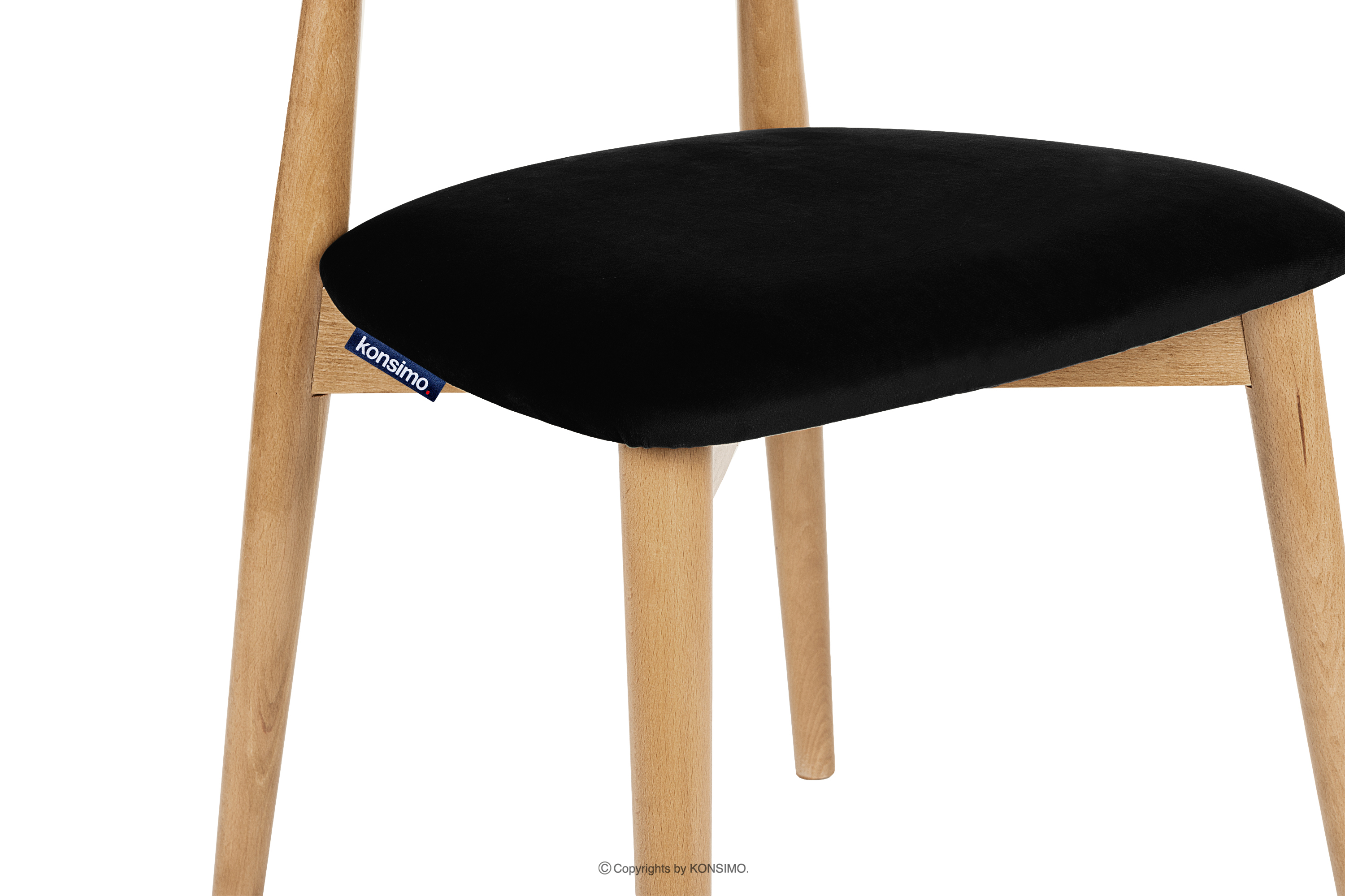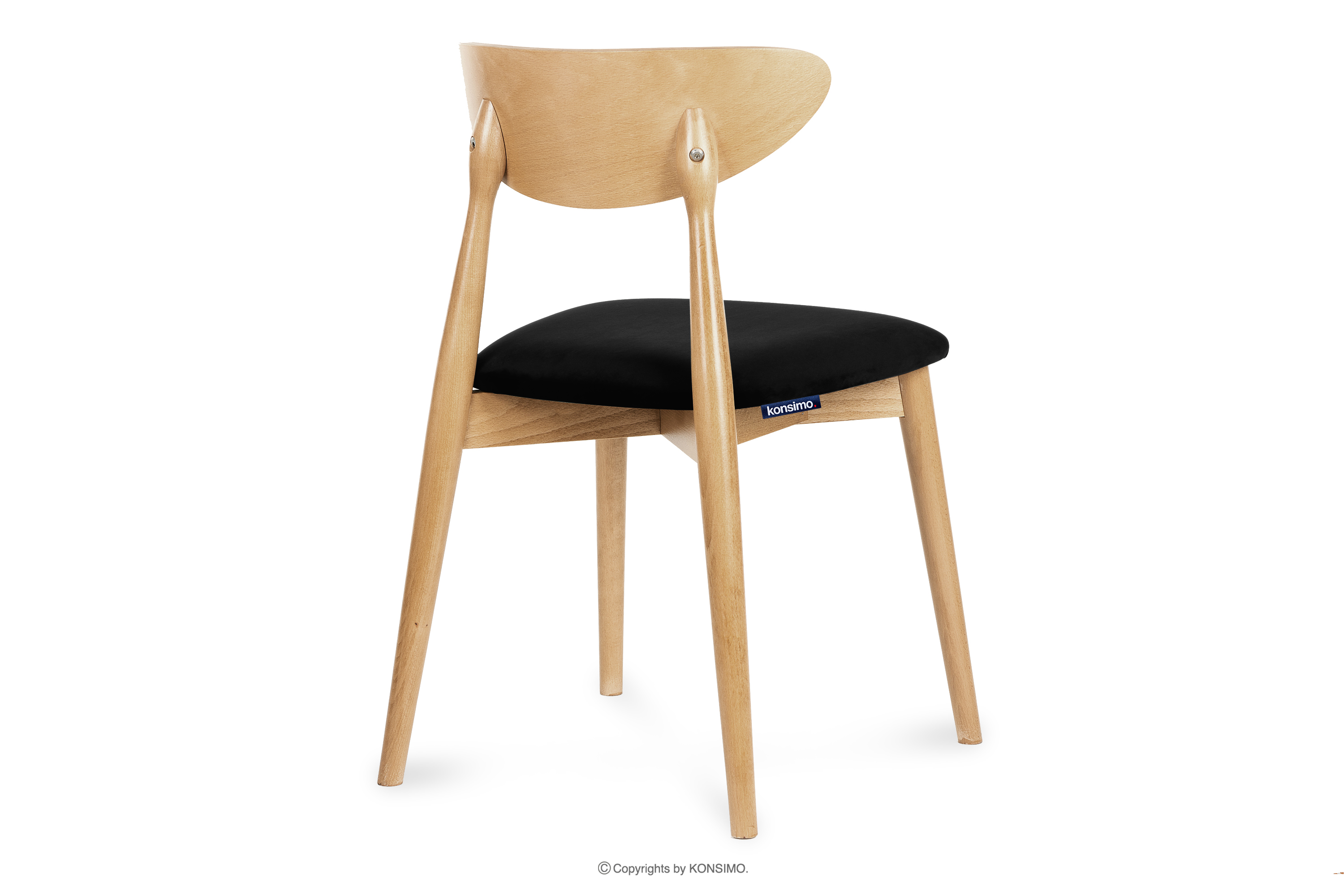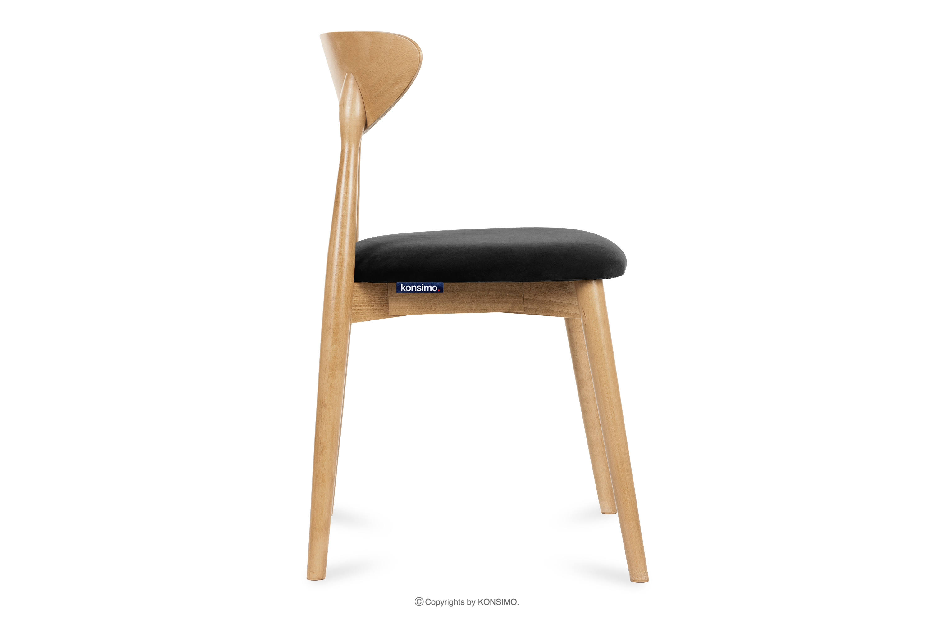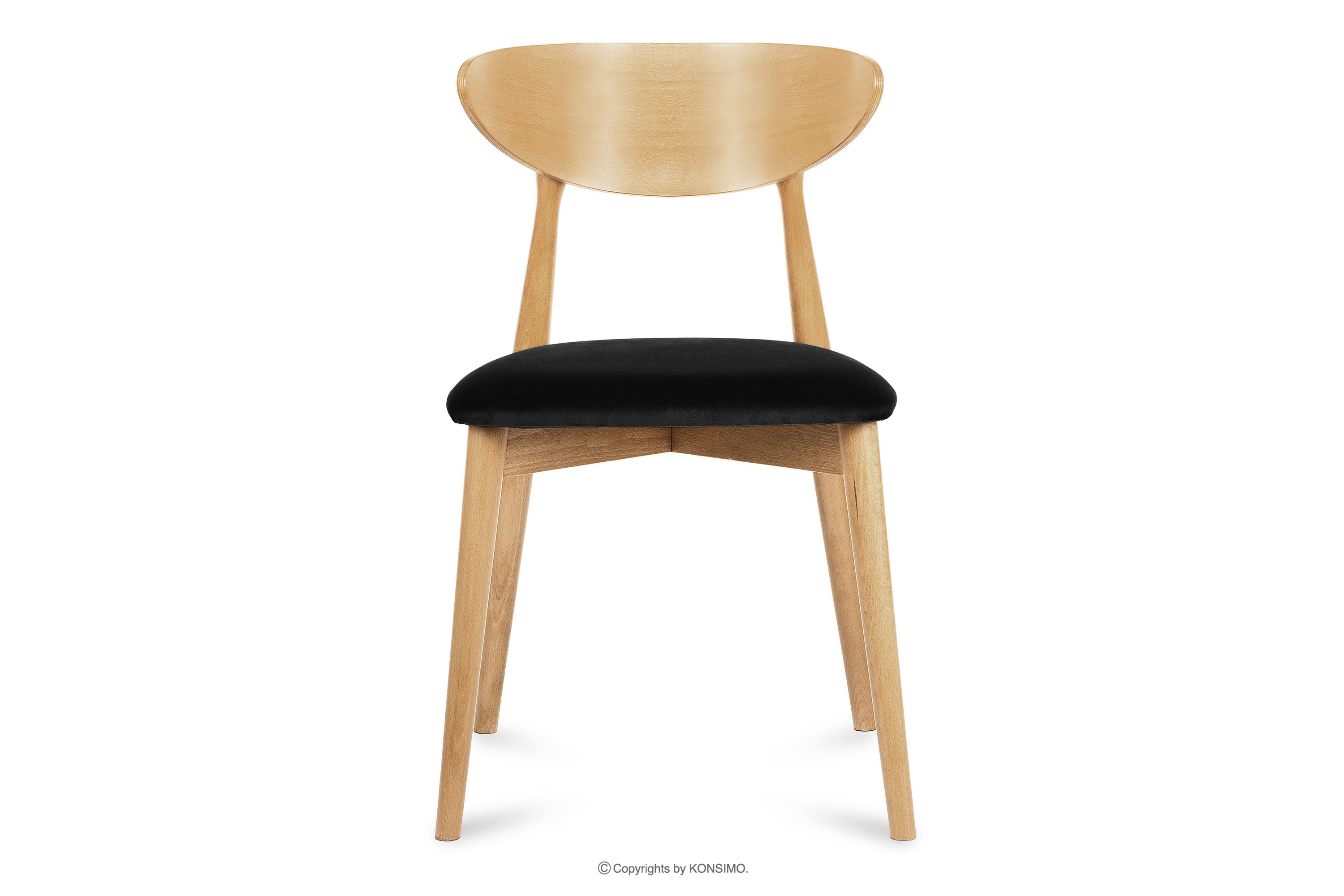 Der Holzstuhl aus Eiche mit schwarzem Velours ist ideal für das Esszimmer, das Wohnzimmer und sogar für die Küche und passt zu Tischen in verschiedenen Stilen.