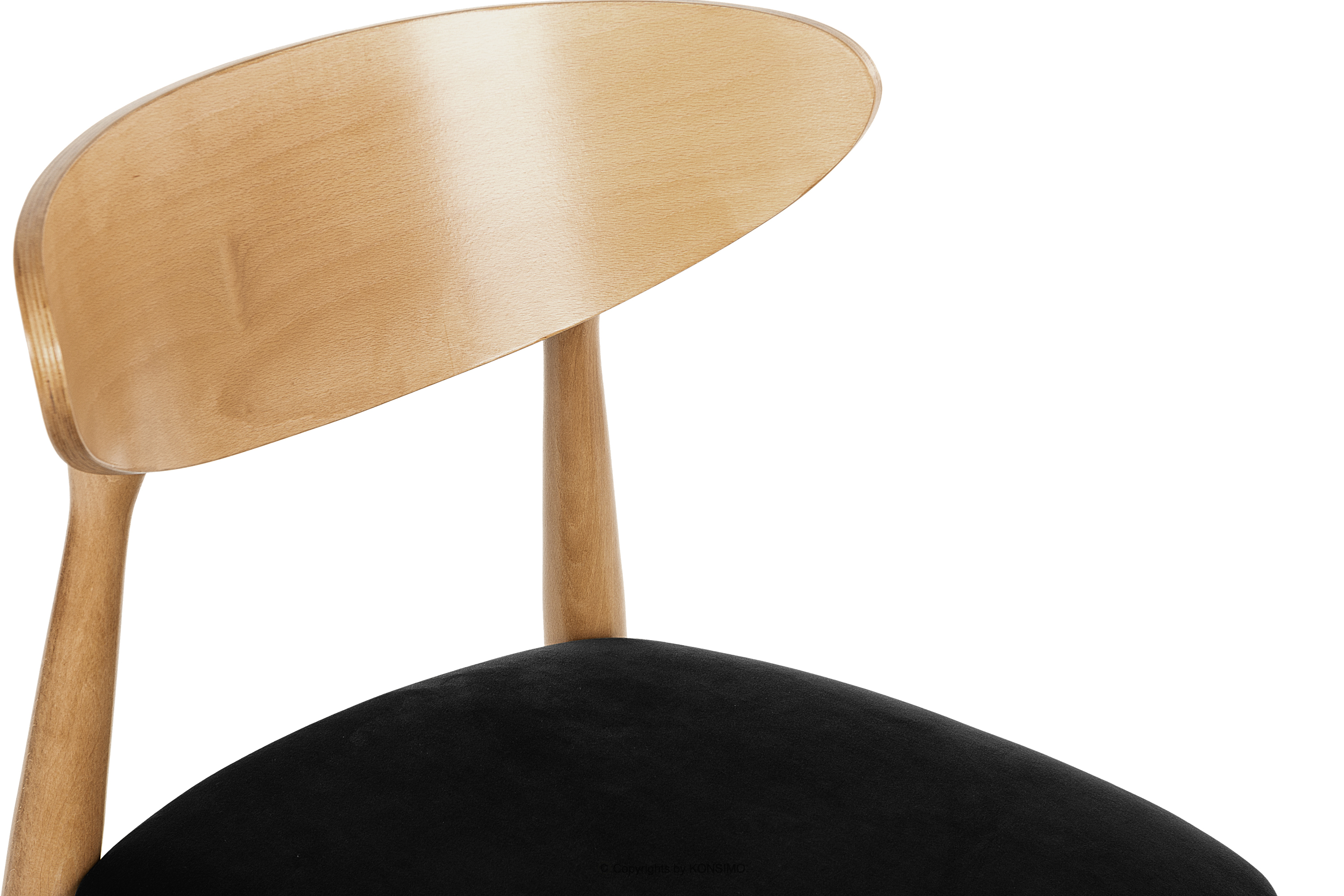 Der Stuhl RABI ist vor allem ein Klassiker. Er erinnert an den Retro-Stil durch die Kombination von schwarzem Velours und einem Gestell in Eiche. Er ist aus massivem Holz gefertigt, das auch bei täglichem Gebrauch viele Jahre lang hält. Optisch besticht er durch seine geschwungene Rückenlehne, die nicht nur das Möbelstück schmückt, sondern auch sehr bequem ist.