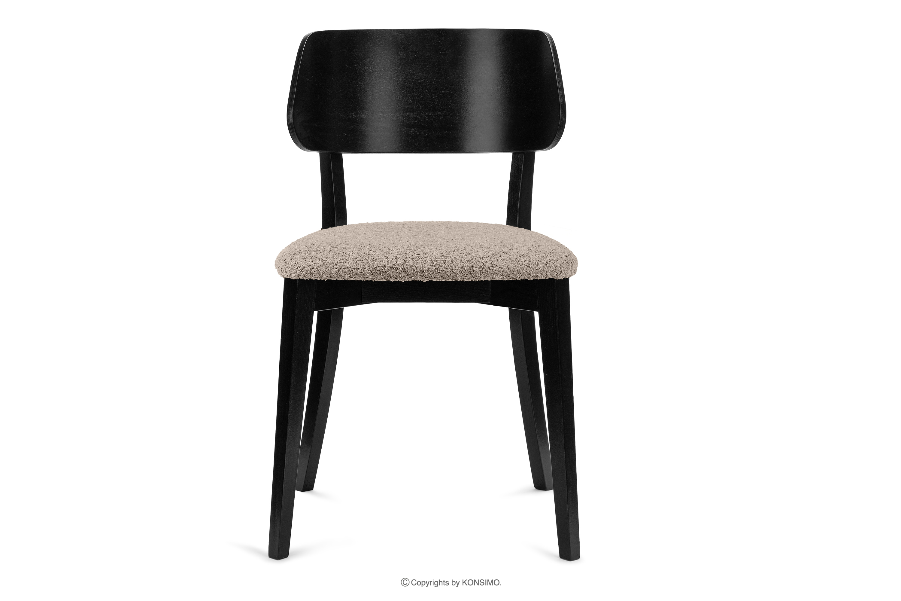 für das Produkt Moderner Holzstuhl mit Bouclestoff dunkelbeige/schwarz 2 tlg.