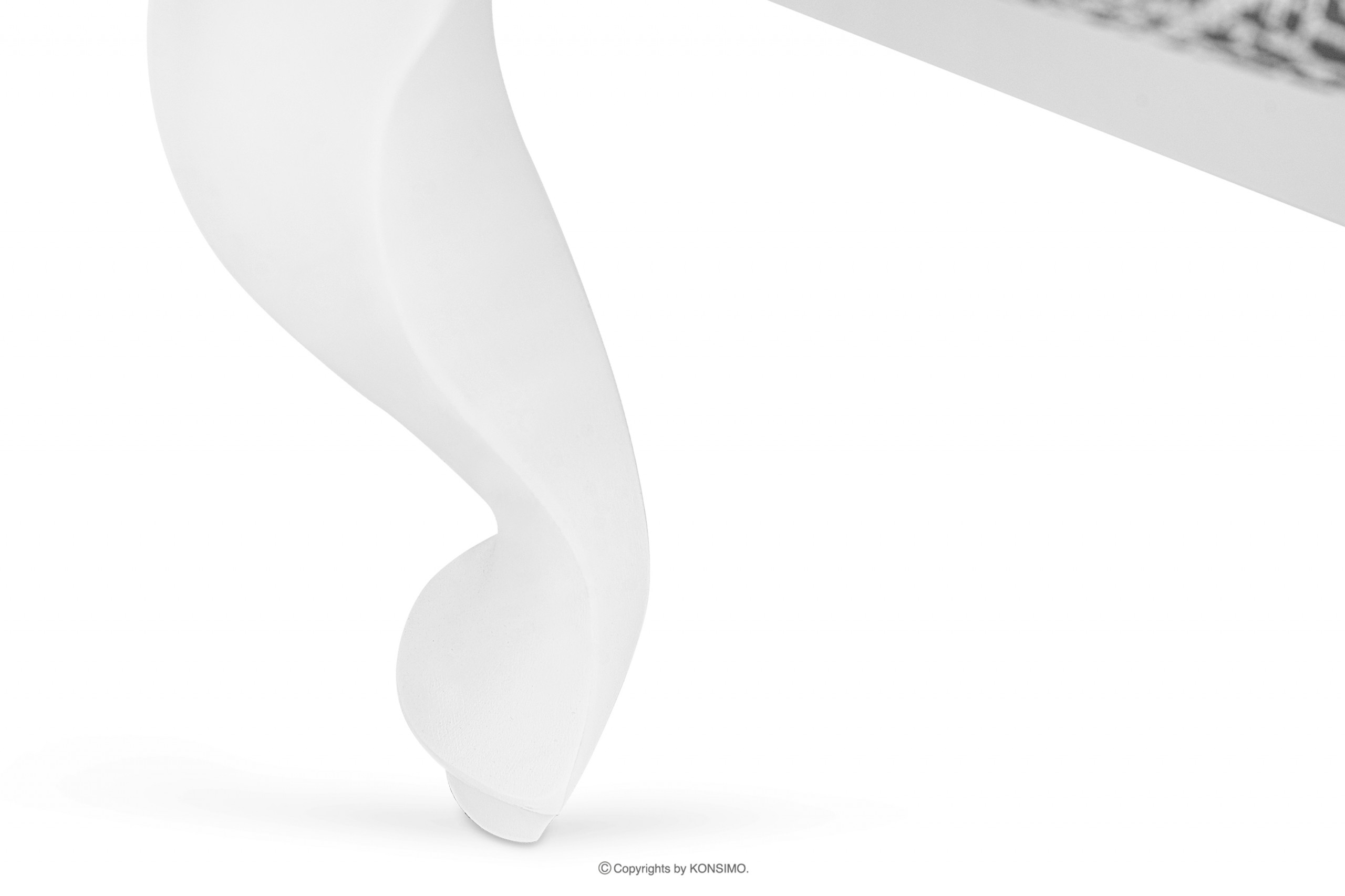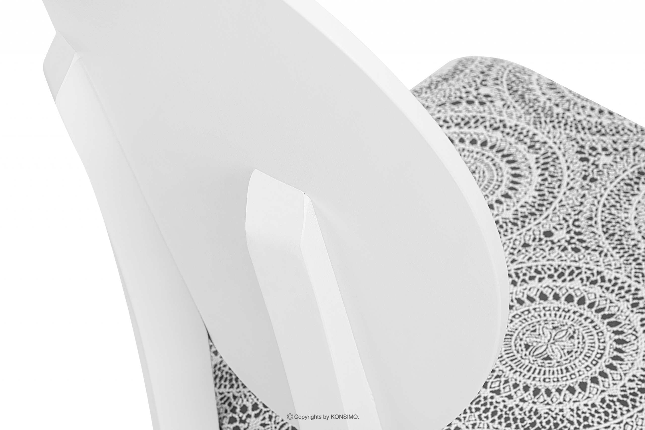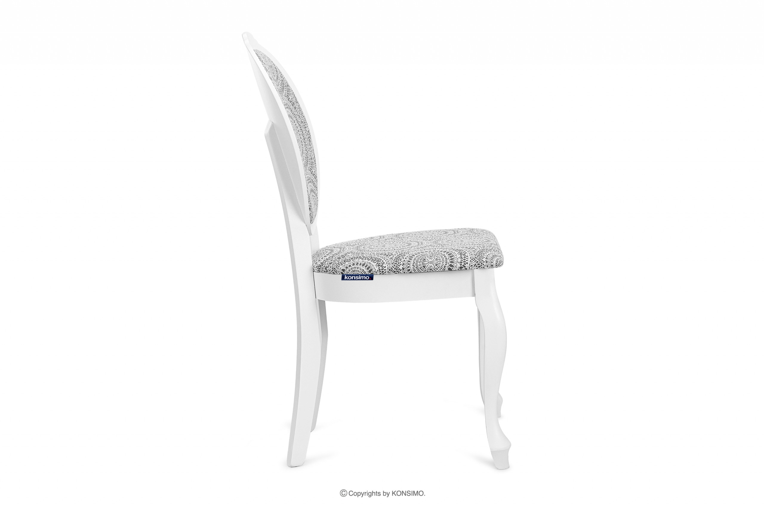 Luxuriöser Stuhl im Glamour-Stil, ideal für einen eleganten Schminktisch oder ein stilvolles Esszimmer. Veredelt mit einem Jacquard-Stoff mit dezentem Prägemuster, der dem Möbelstück einen exklusiven Charakter verleiht. Die bequeme Sitzfläche und Rückenlehne sind mit hochwertigem Polyurethanschaumstoff T-30 und 40 / T-25 und 170 gefüllt, der für ideale Elastizität und Langlebigkeit sorgt.