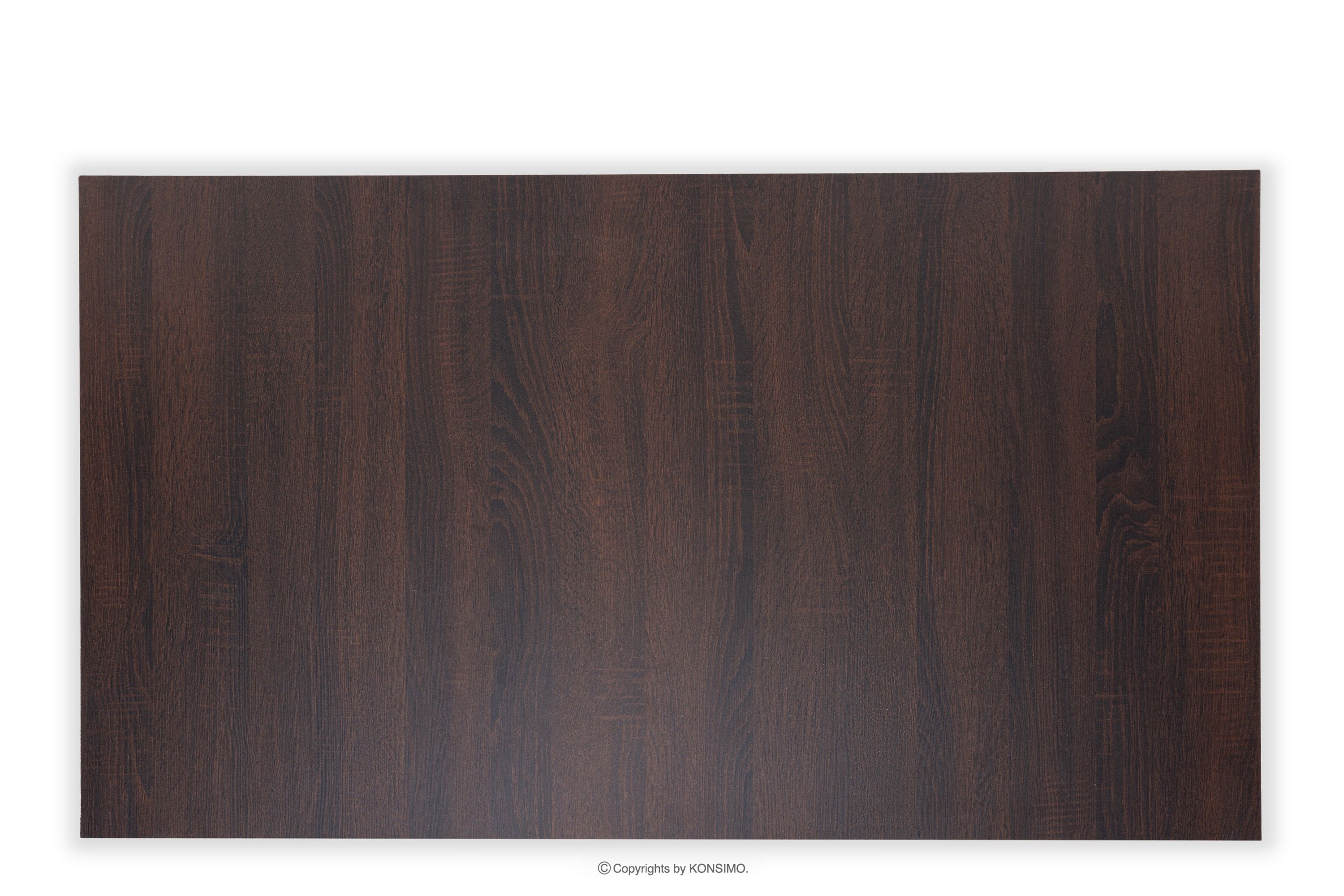 Moderner, ausziehbarer Esstisch, ideal für Lofts und minimalistische Räume. Er zeichnet sich durch charakteristische Metallbeine aus, die ihm einen industriellen Charakter verleihen und für hervorragende Stabilität sorgen. Die Tischplatte aus hochwertiger laminierter Möbelplatte verbindet Langlebigkeit mit ästhetischem Aussehen. Das funktionale Aufklappsystem ermöglicht eine schnelle Anpassung der Tischgröße an die aktuellen Bedürfnisse.