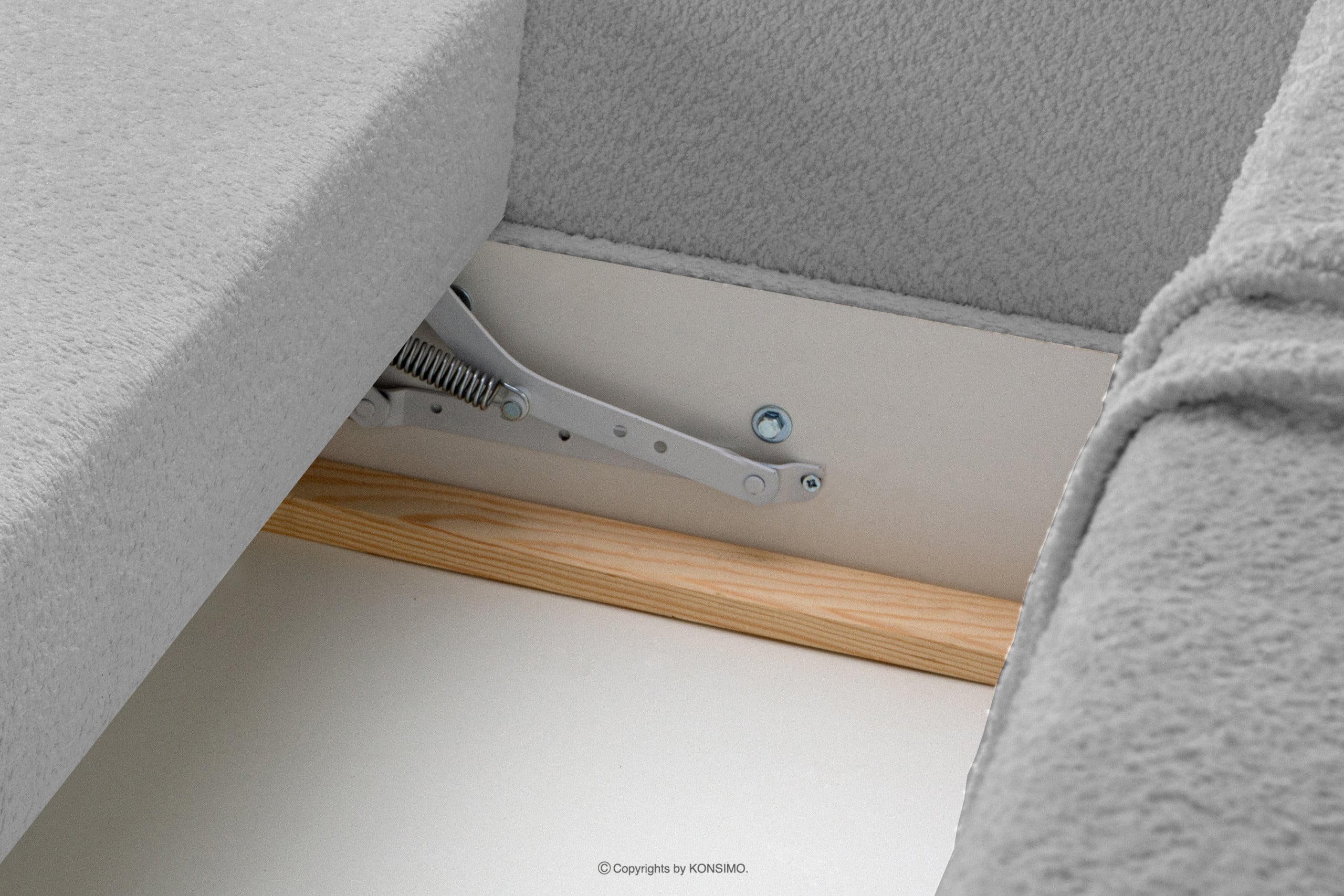 VISNA Mehr aus der Kollektion Skandinavisches Sofa Wohnzimmer mit Stauraum für Bettwäsche - Hellgrau Bouclé- Farbe grau