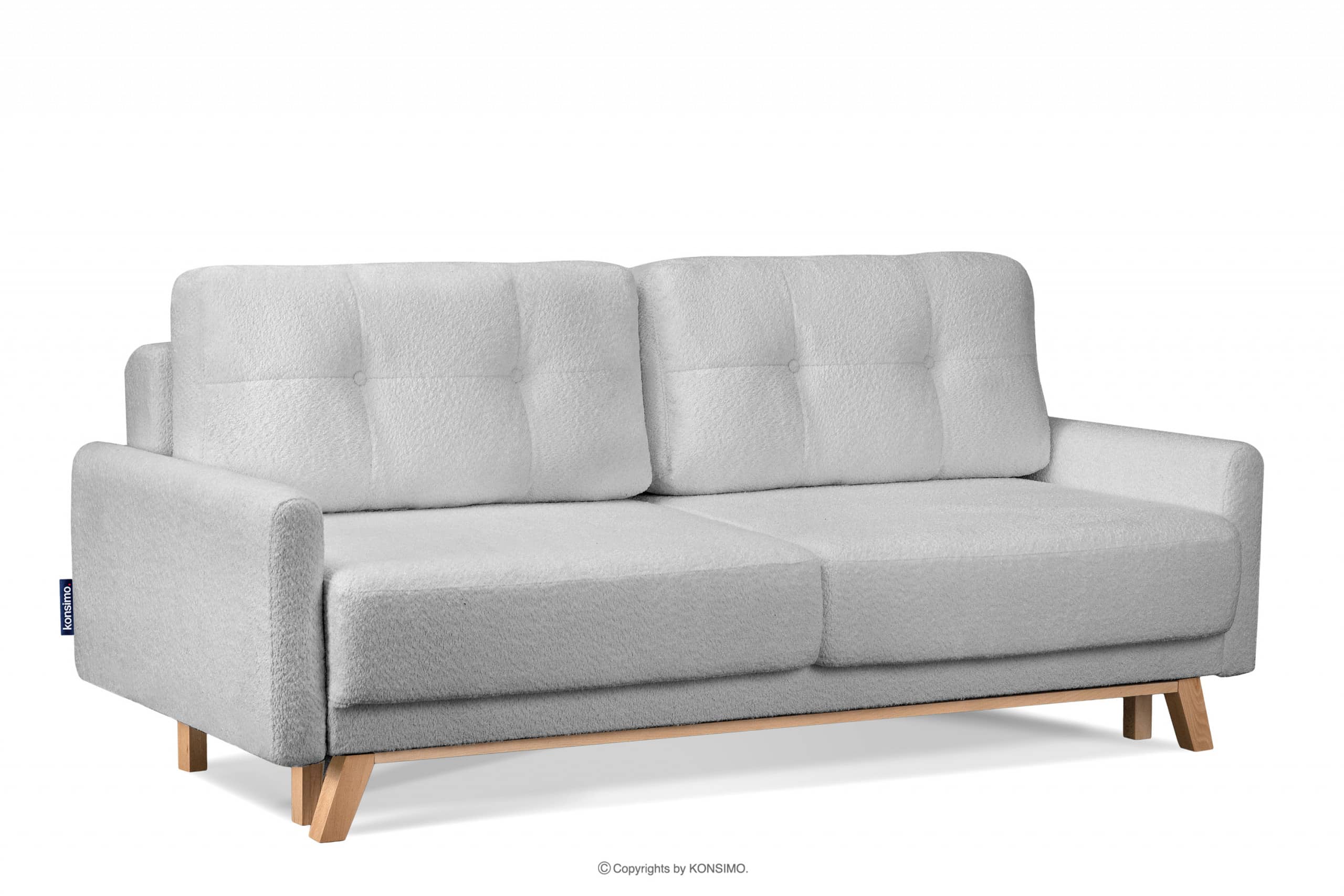 VISNA Skandinavisches Sofa Wohnzimmer mit Stauraum für Bettwäsche - Hellgrau Bouclé