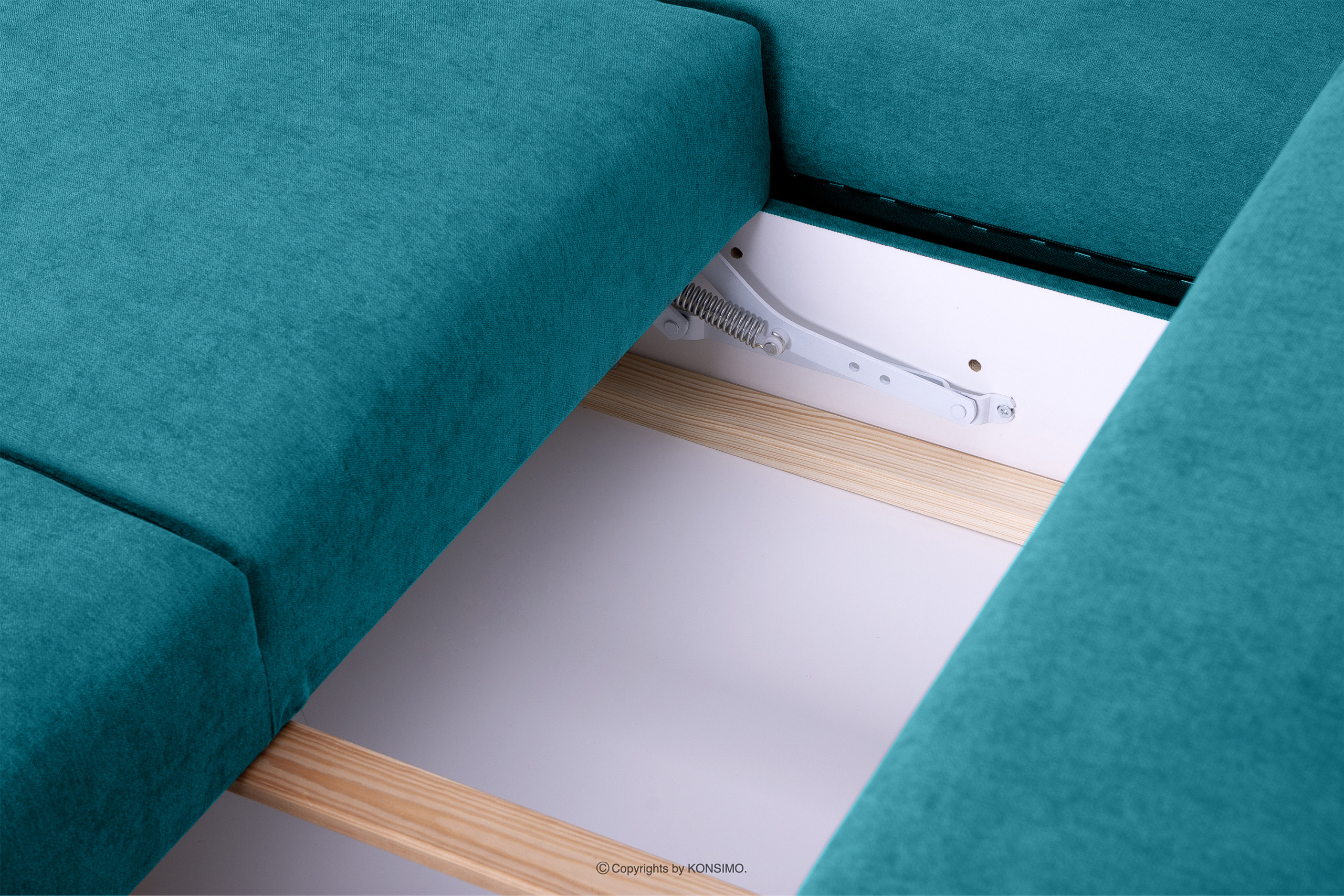VISNA Mehr aus der Kollektion Skandinavisches Sofa Wohnzimmer mit Stauraum für Bettwäsche - Türkis- Farbe türkis