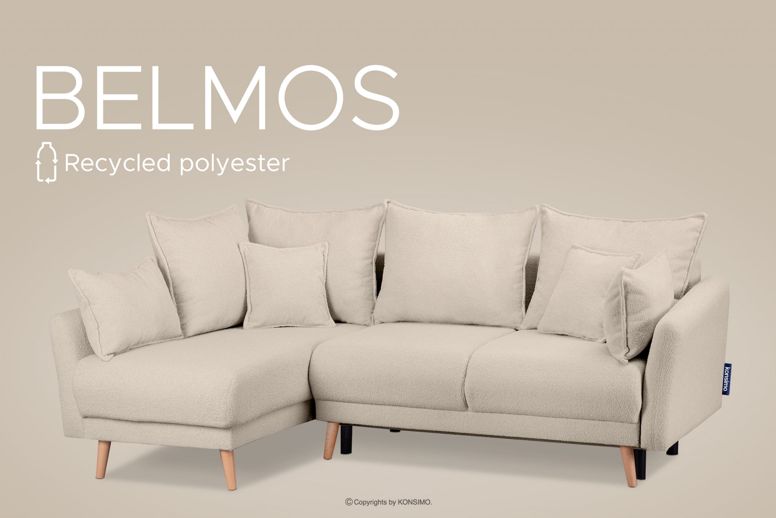 BELMOS Mehr aus der Kollektion Modischer Samt-Ecksofa auf Beinen cremefarben links- Farbe creme