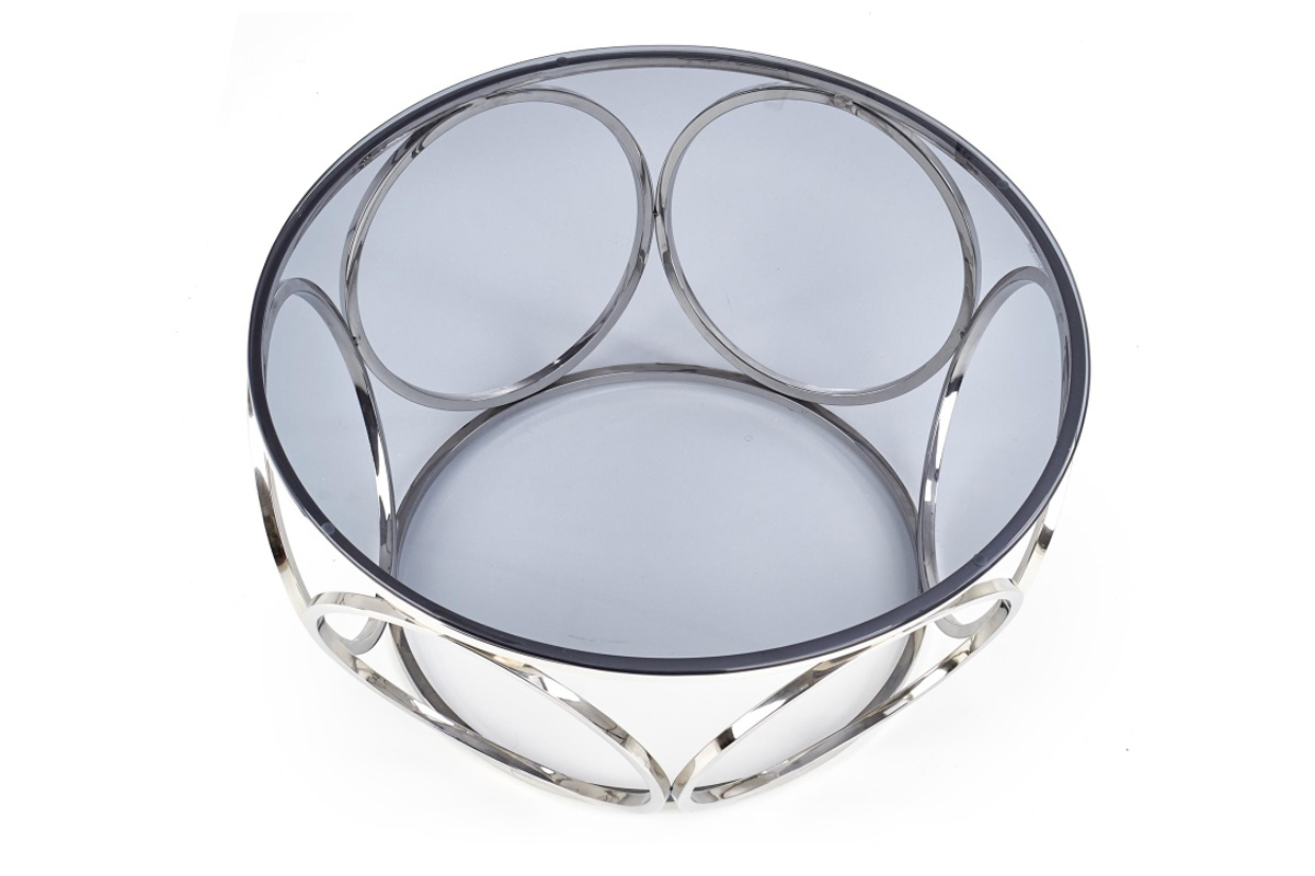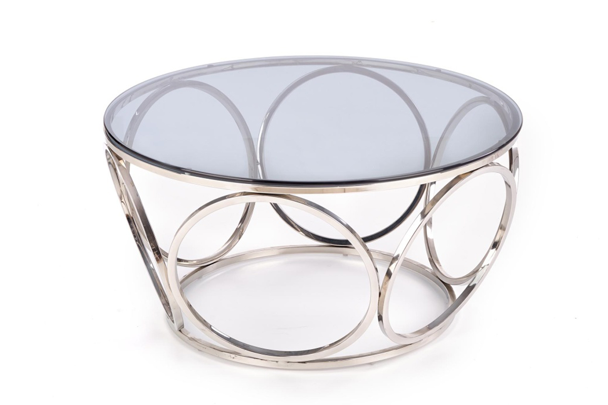 ELBOS Mehr aus der Kollektion Großer runder Couchtisch auf Stahlgestell mit Glasplatte- Farbe transparent/silbern