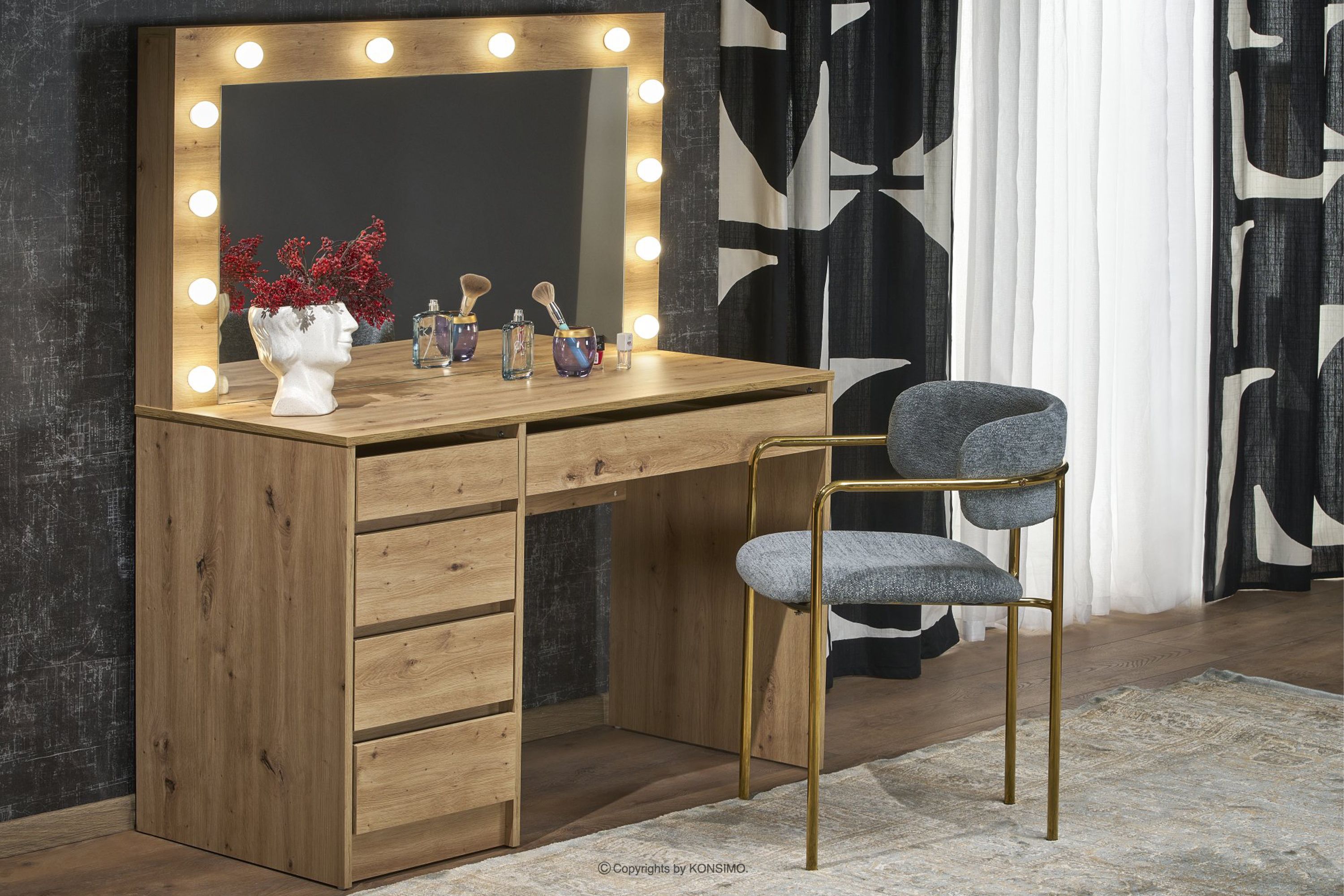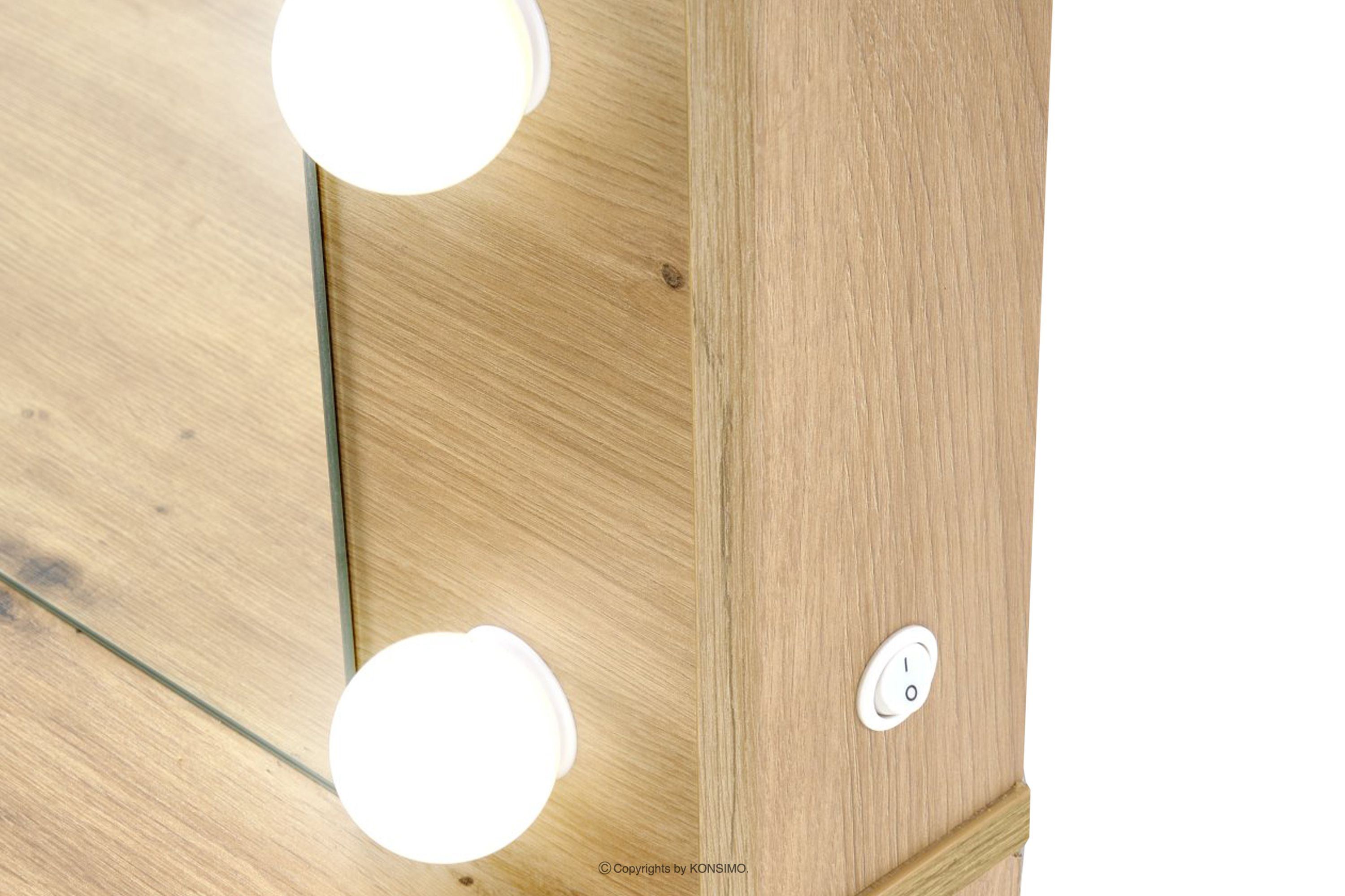 Toilette mit beleuchtetem Spiegel und Schubladen aus Eiche handgefertigt