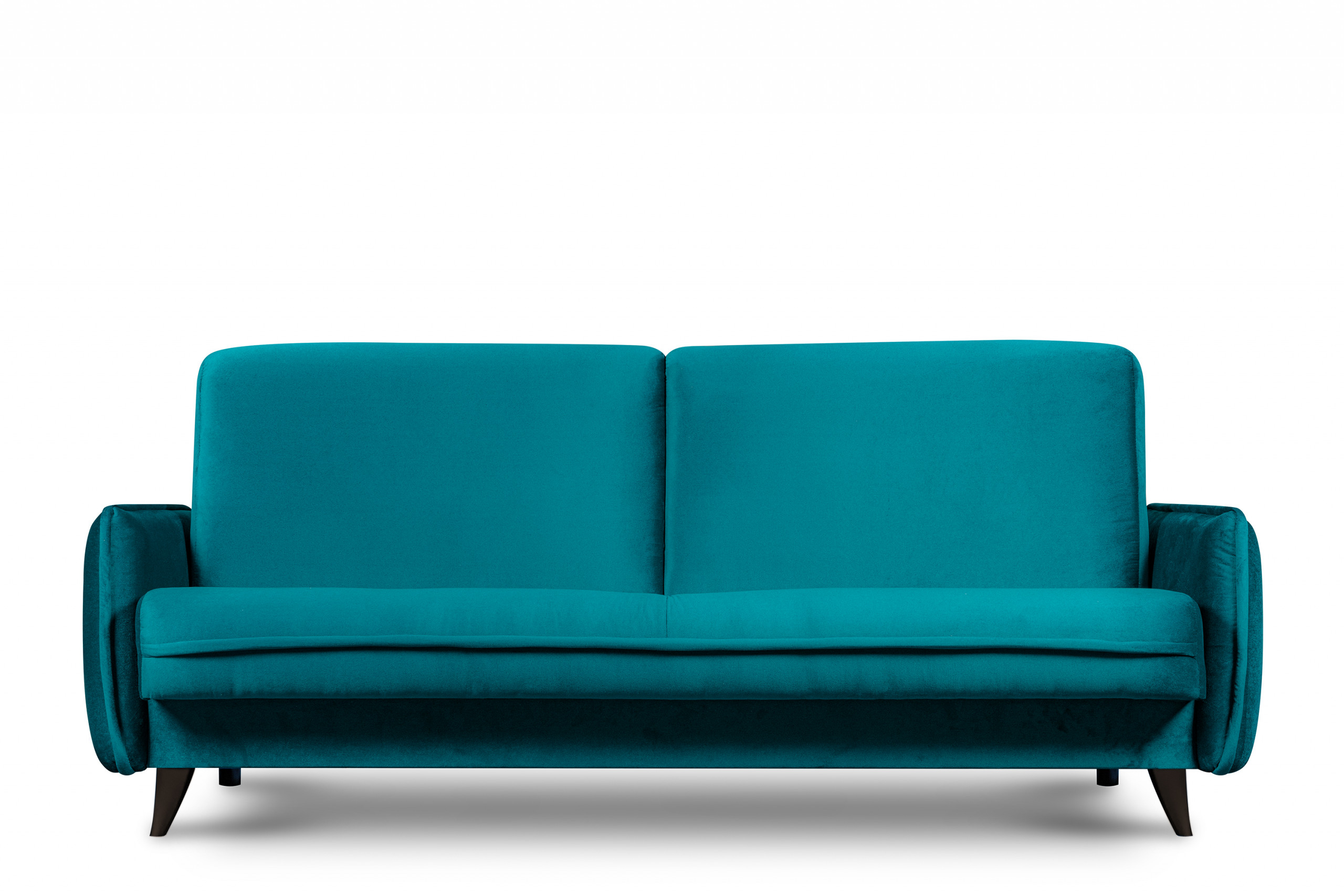 Das moderne Schlafsofa mit der Funktion des Schlafens in marineblauem Samt aus der GRINDE-Kollektion ist ein Möbelstück im eleganten Stil. Die Erholung wurde so gestaltet, dass sie höchsten Erwartungen gerecht wird. Es ist erwähnenswert, dass in dieser Kollektion auf jedes Detail geachtet wurde. Besondere Aufmerksamkeit gilt den Seiten, die stilvolle Nähte haben.