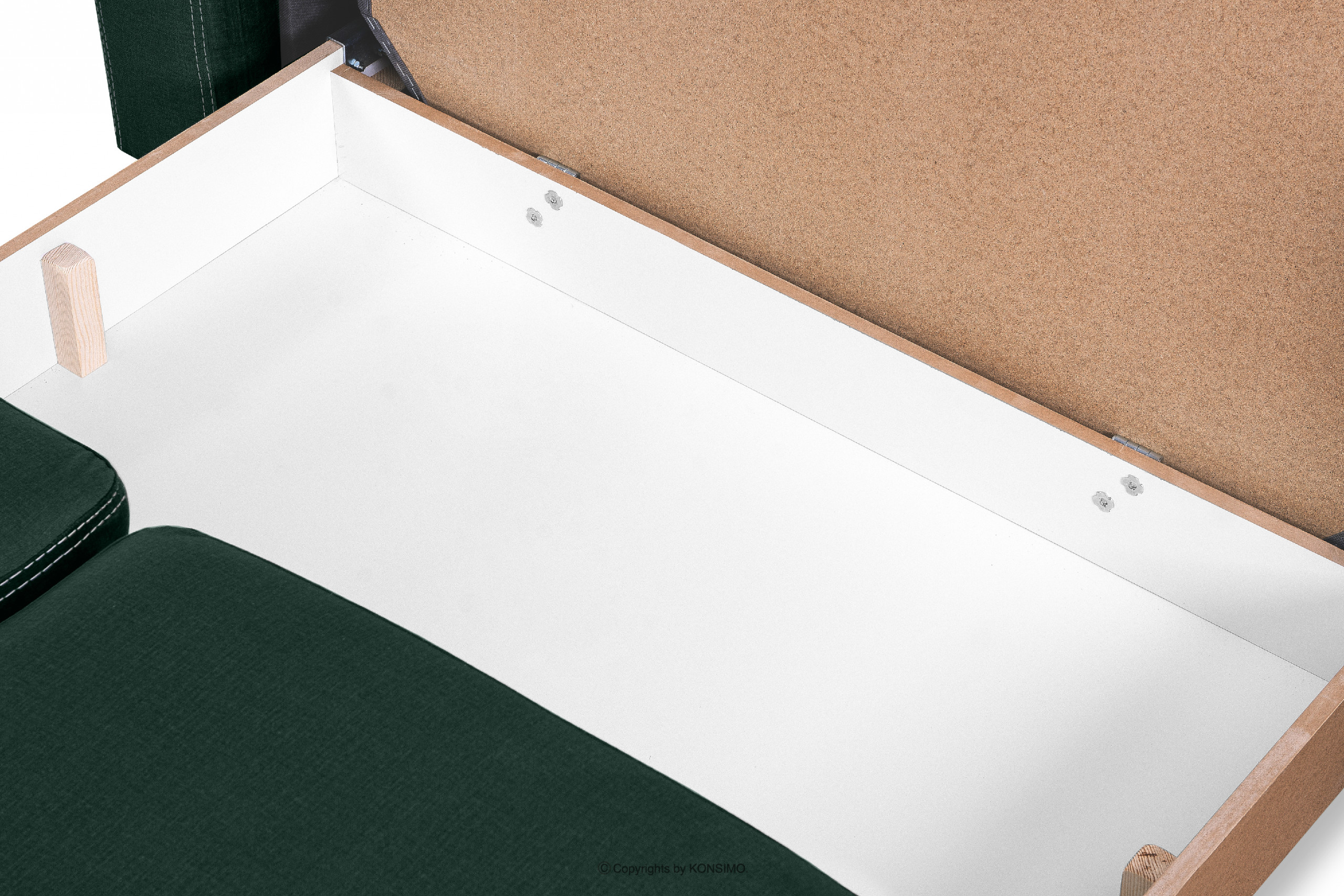 Das grüne ausklappbare Sofa mit einer bequemen hohen Rückenlehne ist ein Produkt, das seit längerer Zeit bei unseren Kunden sehr beliebt ist. Wenn Sie nach einem vielseitigen Sofa für ein kleines Wohnzimmer, Schlafzimmer oder Studio-Apartment suchen, ist das EMBER-Sofa eine sehr gute Wahl. Sie können darauf bequem sitzen und Ihren Lieblingsfilm ansehen oder ein süchtig machendes Buch lesen oder sogar darauf schlafen.