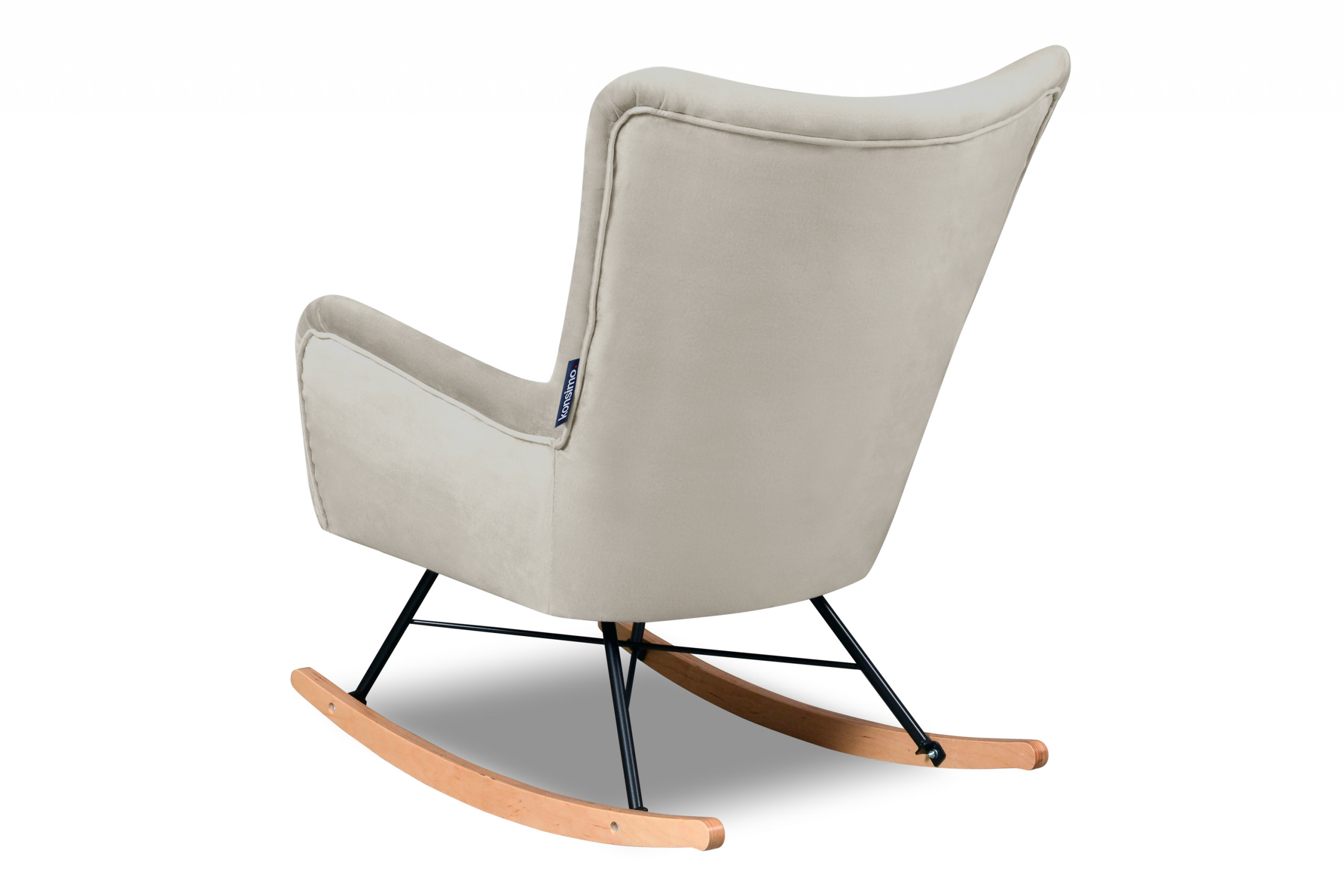 Der skandinavische Schaukelstuhl in cremefarben erfüllt höchste Erwartungen. Er ist mit einem angenehm weichen Stoff bezogen und zeichnet sich durch hohe Abrieb- und Pillingbeständigkeit aus. Der ADDUCTI-Sessel passt perfekt zum skandinavischen und Loft-Stil. Die Kombination aus Holz und Samt funktioniert wirklich gut und bringt Wärme in den Raum. Er wird sich hervorragend in Begleitung eines Sofas oder einer Eckcouch aus demselben Stoff präsentieren.