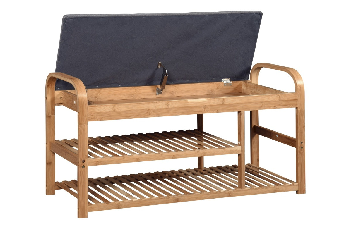 FENDLO Mehr aus der Kollektion Holz-Polsterbank mit Einlegeböden für den Flur- Farbe natürlich/grau