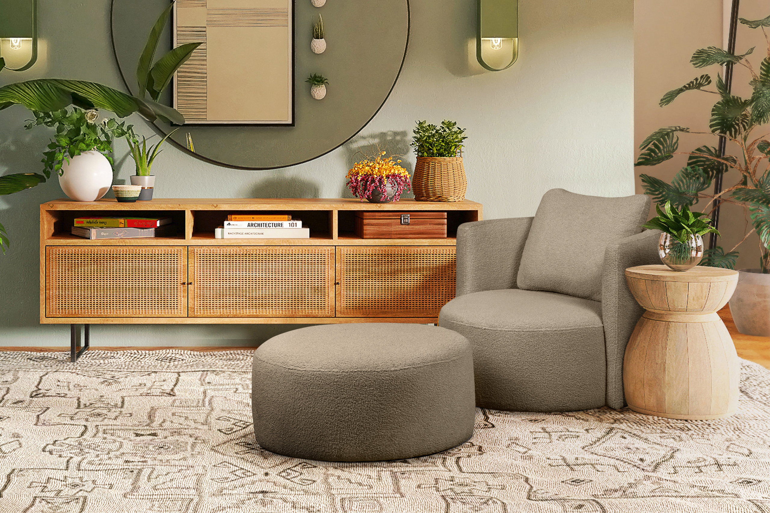 für das Produkt Drehbarer Sessel aus Boucle dunkelbeiger