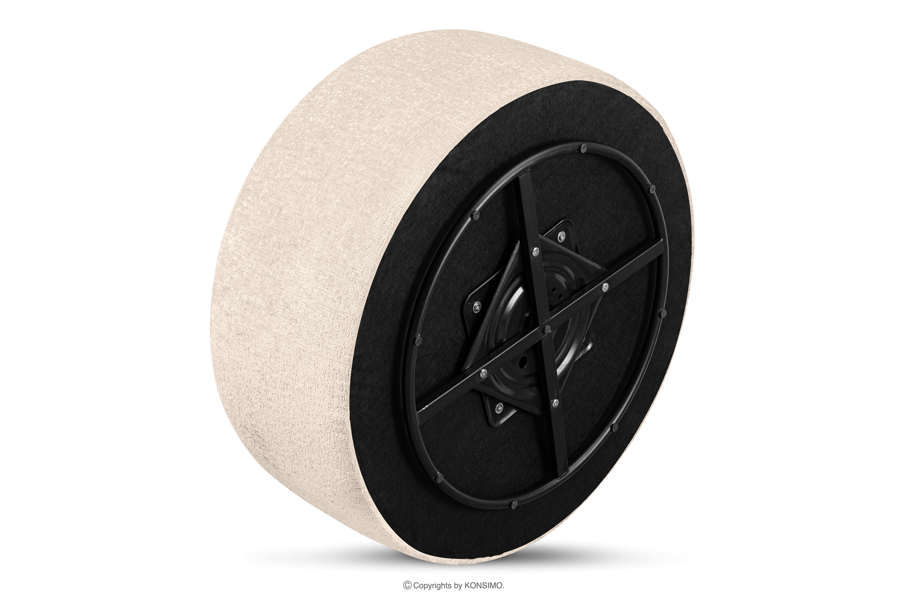 Der drehbare Sitzhocker aus ecrufarbenem Chenille-Stoff ist ein Produkt, das durch sein ungewöhnliches Aussehen alle Blicke auf sich zieht. Dank seiner ungewöhnlichen Form passt er in modernistische und Loft-Einrichtungen. Die Polsterung des Sitzhockers besteht aus dem sogenannten Chenille-Stoff, der sich sehr angenehm anfühlt. Ein zusätzliches Merkmal dieses Möbelstücks ist sein Drehfuß, dank dem sich der Sitzhocker um 360 Grad drehen lässt.