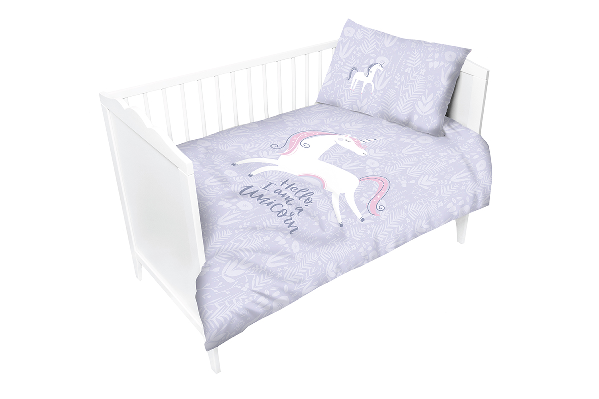 LULA Mehr aus der Kollektion Kinderbettwäsche lila mit Einhorn 90x120 cm- Farbe violett