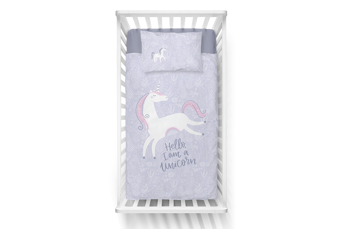 für das Produkt Kinderbettwäsche lila mit Einhorn 90x120 cm