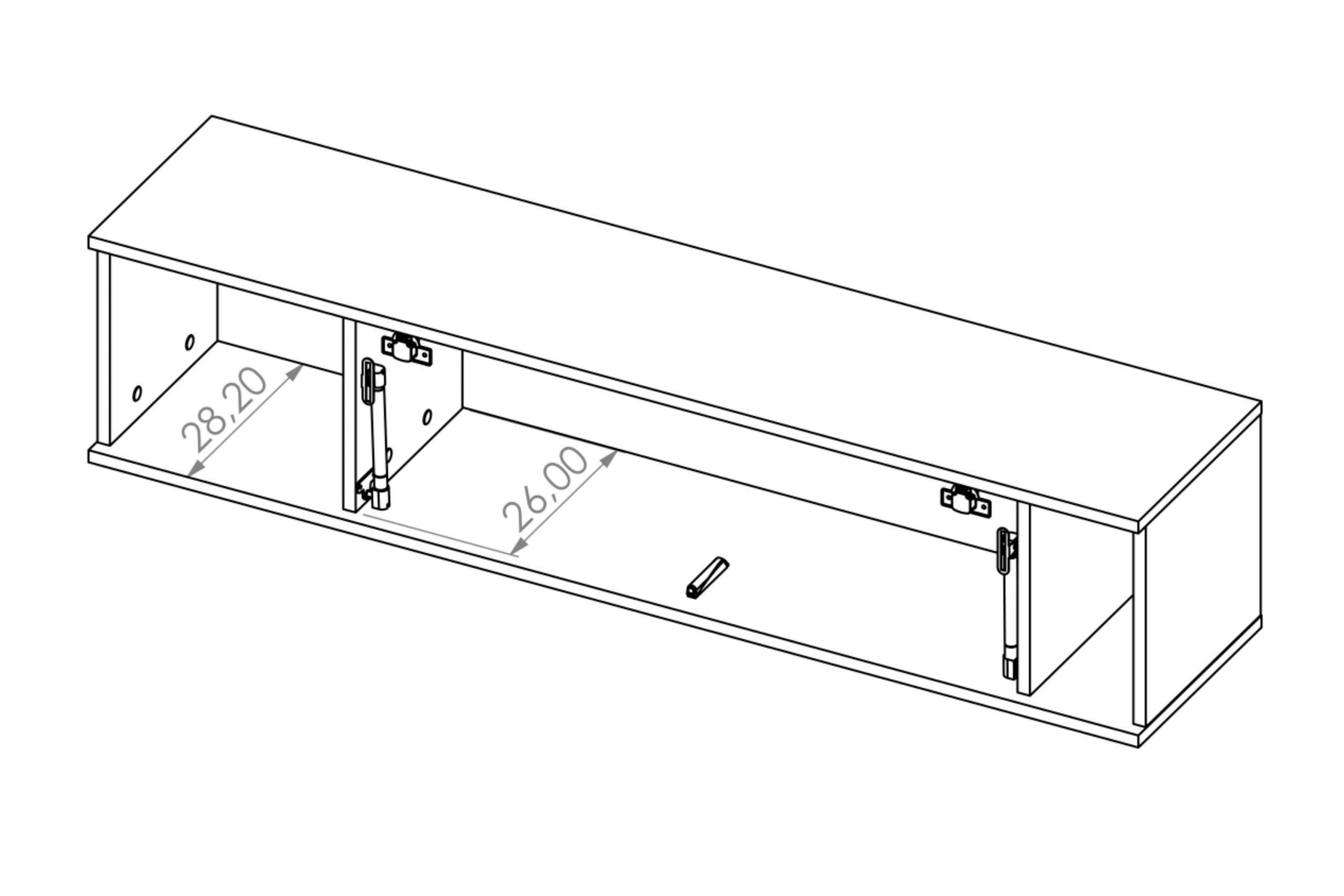 Minimalistischer weißer Hängeschrank für das Schlafzimmer ist ein funktionaler Möbelstück mit interessantem Design. Es hat keine überflüssigen Verzierungen oder Griffe, die Türen werden mit der Push-to-Open-Methode geöffnet. Auf den offenen Regalen können Bücher, Dekorationen oder Bilderrahmen platziert werden. Es verschönert den Raum unglaublich und bietet zusätzlichen Stauraum für alltägliche Gegenstände.
