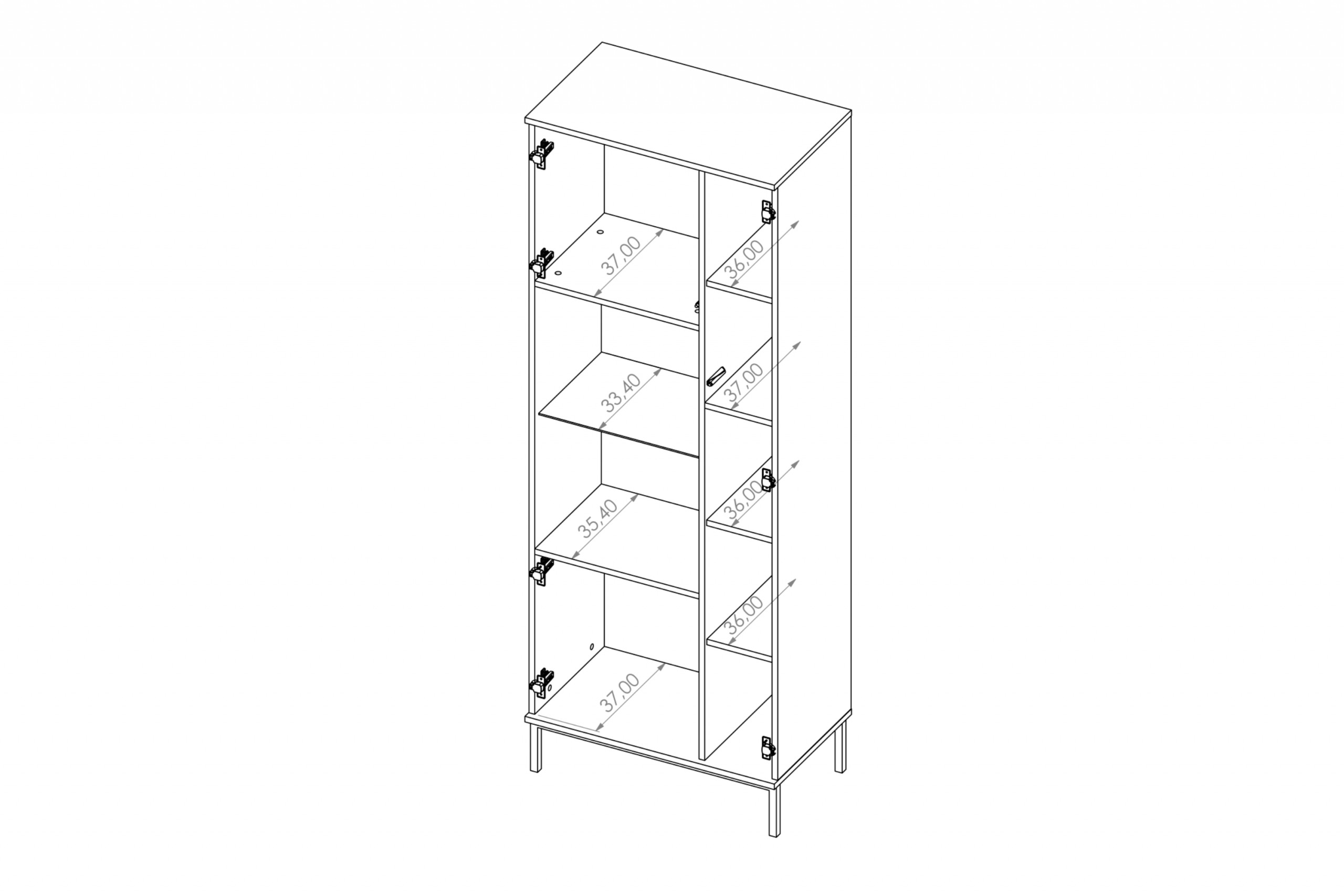 Das moderne schwarze Regal mit Regalen für das Wohnzimmer ist ein sehr funktionaler Möbelstück mit interessantem Design. Es hat keine unnötigen Verzierungen oder Griffe, die Türen werden mit der Push-to-Open-Methode geöffnet. Die sichtbaren Regale hinter dem Regal können mit zusätzlicher LED-Beleuchtung beleuchtet werden. Das Regal steht auf hohen Metallbeinen, was das Aufräumen im Raum erleichtert und problemlos unter ihm ein Reinigungsroboter Platz findet.
