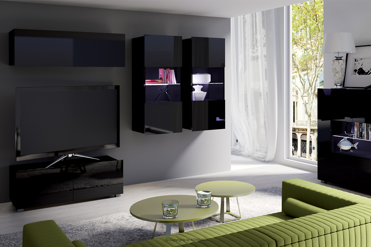 PAVO Mehr aus der Kollektion Verschließbares Wandregal schwarz glänzend- Farbe schwarz glänzend/mattschwarz