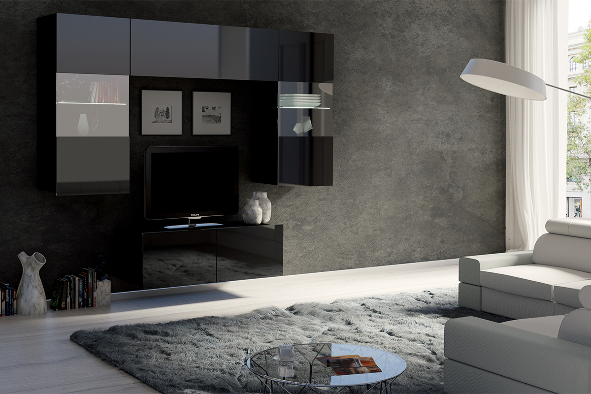 PAVO Mehr aus der Kollektion TV-Schrank für TV schwarz glänzend 100cm- Farbe schwarz glänzend/mattschwarz