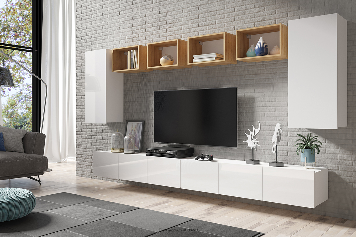PAVO Mehr aus der Kollektion Länglicher Wandschrank weiß glänzend- Farbe glänzend weiß/matt weiß