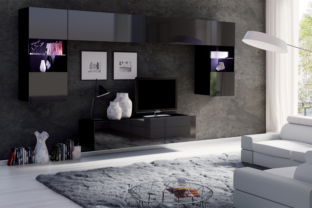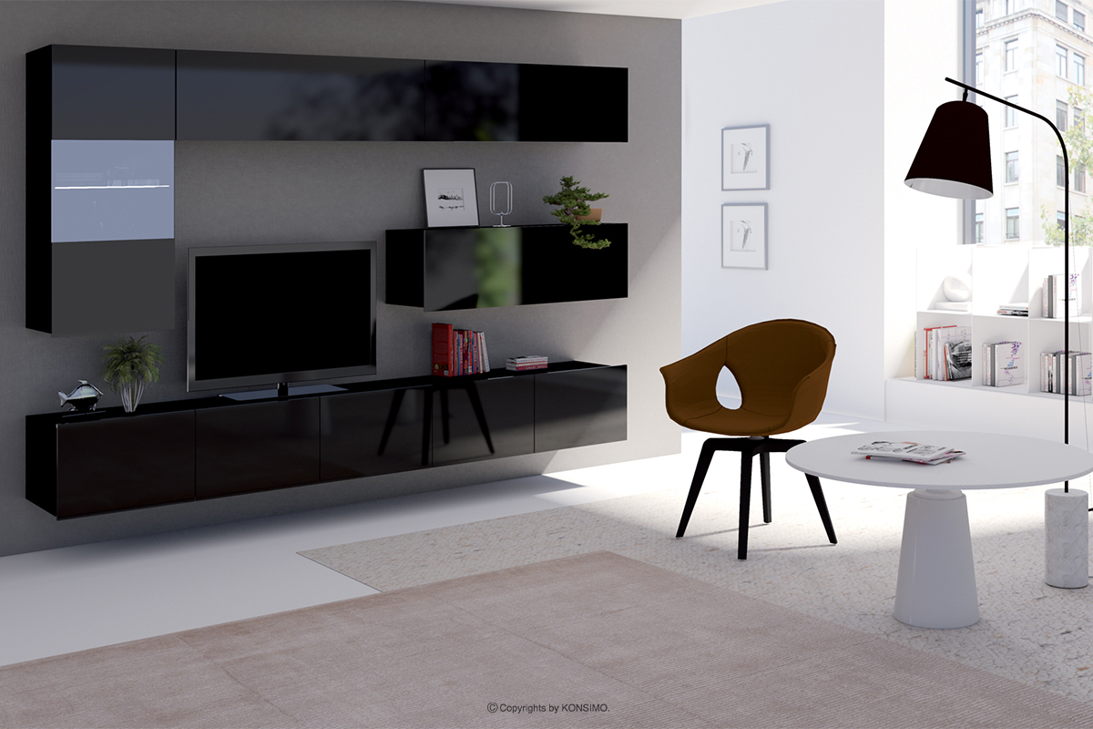 PAVO Mehr aus der Kollektion Hängeschrank schwarz glänzend mit Beleuchtung- Farbe schwarz glänzend/mattschwarz