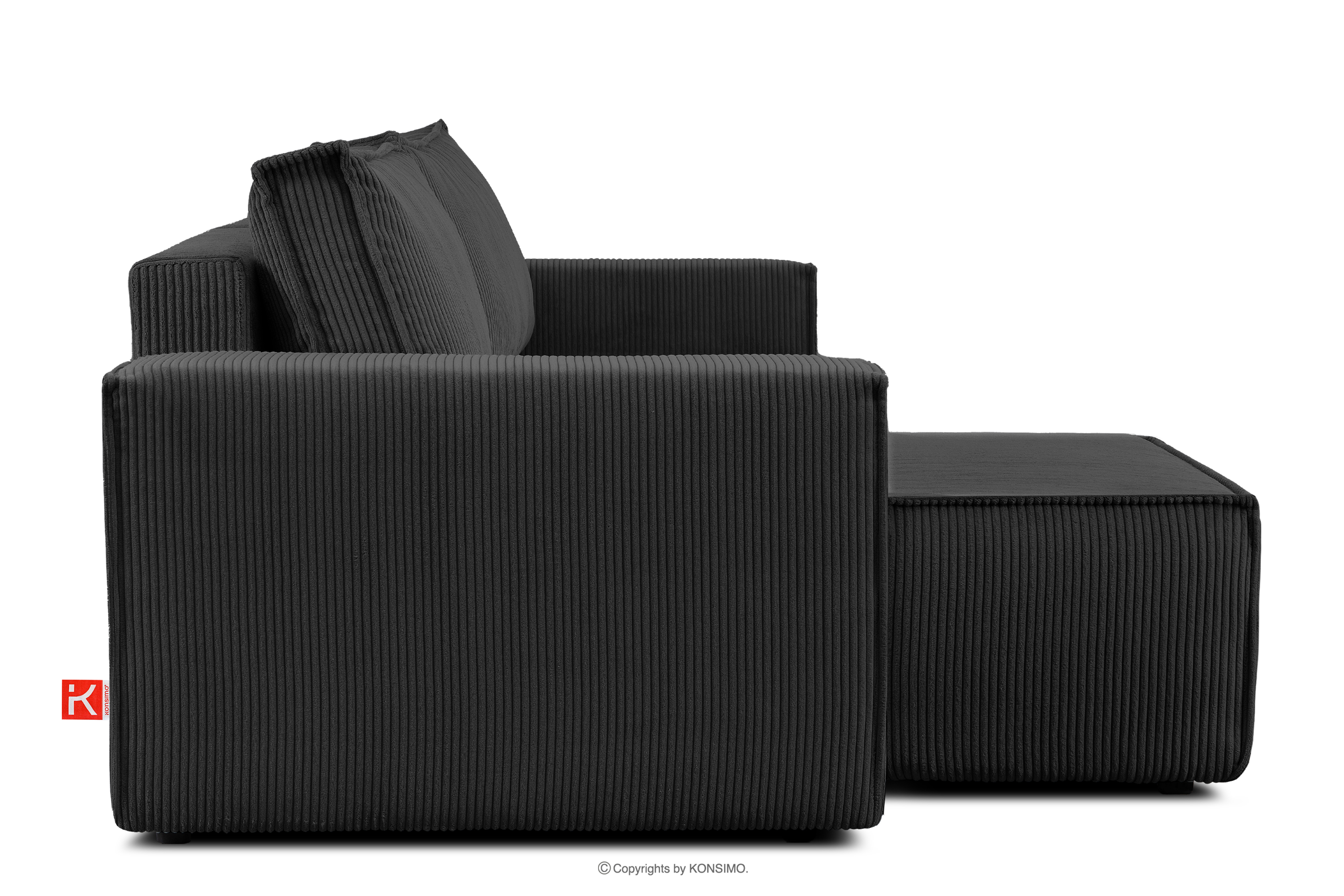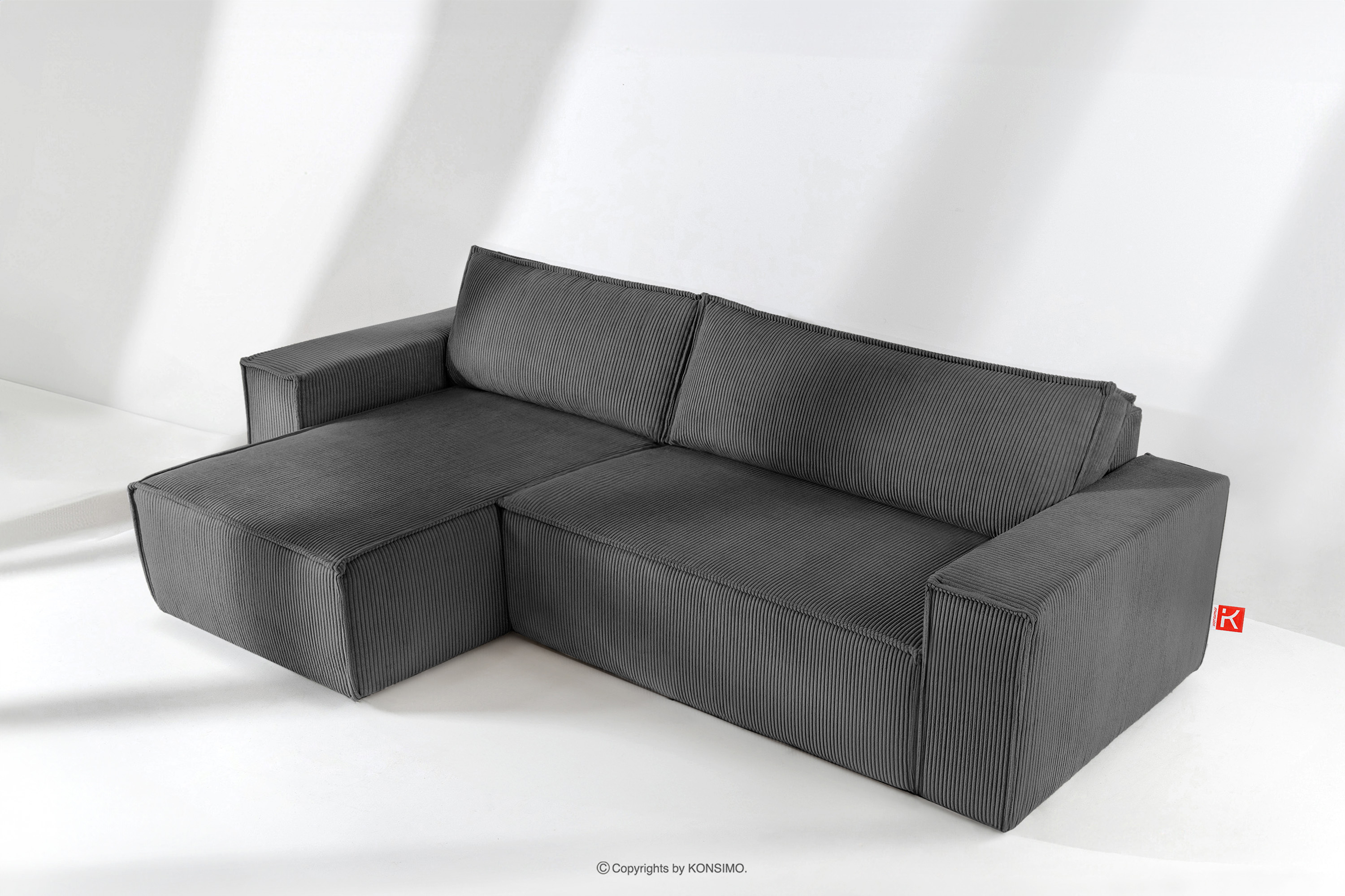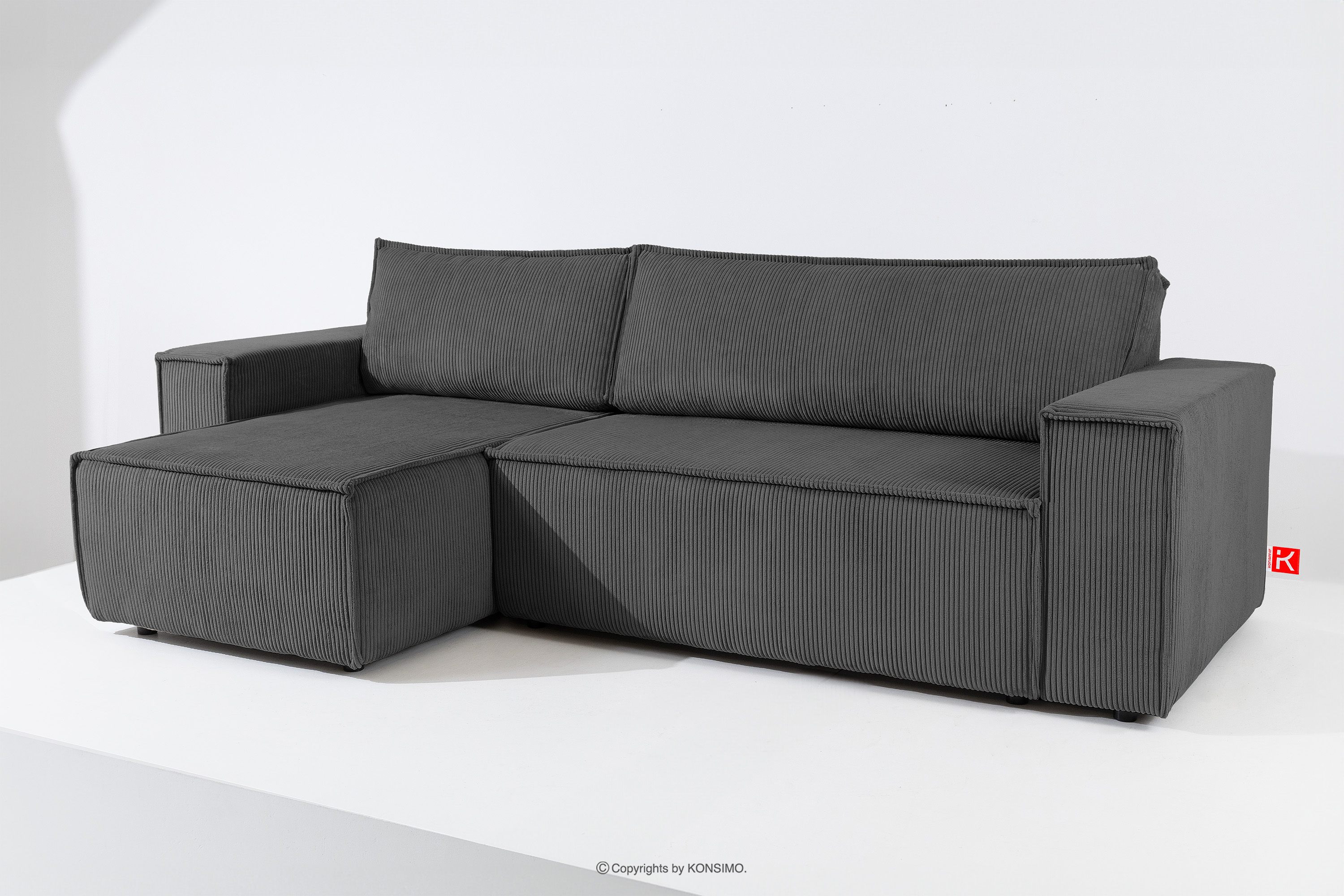 Das universelle Ecksofa mit Schlaffunktion dunkelgrau rechts/links ist ein Möbelstück im modernistischen Stil. Mit seinen charakteristischen breiten Seiten hebt es sich von der Masse der Standardmöbel ab. Doch das ist nur der Anfang seiner außergewöhnlichen Möglichkeiten. Es ist ein universelles Ecksofa, das heißt, es hat die zusätzliche Eigenschaft, dass es selbst entscheiden kann, auf welcher Seite Sie die Liege haben möchten.