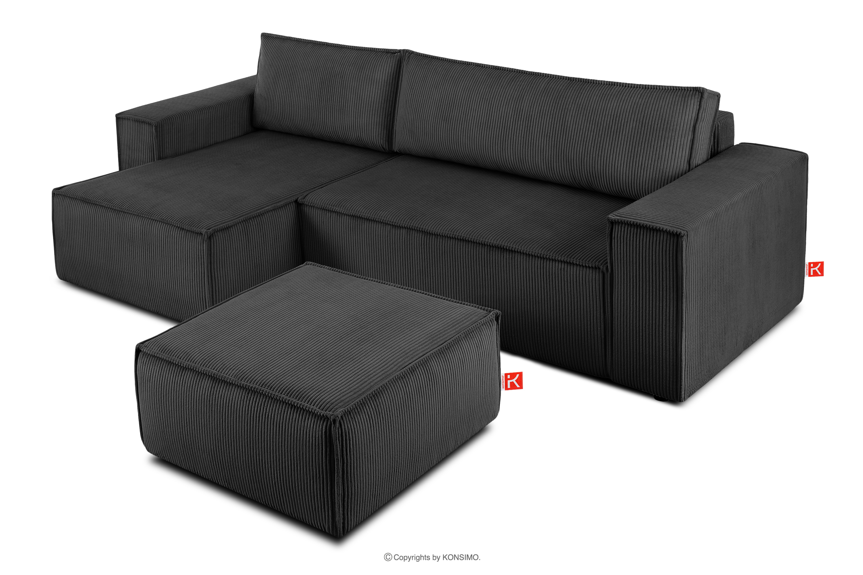 Sie müssen sich keine Gedanken darüber machen, ob die Möbel bei einem Umzug oder einer Renovierung noch passen. Sie können die Seite, auf der Sie die längere Seite haben möchten, jederzeit leicht selbst ändern. Die gesamte Polsterung dieses einzigartigen Möbelstücks besteht aus Kordstoff, der sich nicht nur angenehm anfühlt, sondern auch lange Zeit ein makelloses Aussehen bewahrt. Dieser Stoff ist eine Garantie dafür, dass Ihr NAPI-Ecksofa immer perfekt aussehen wird.