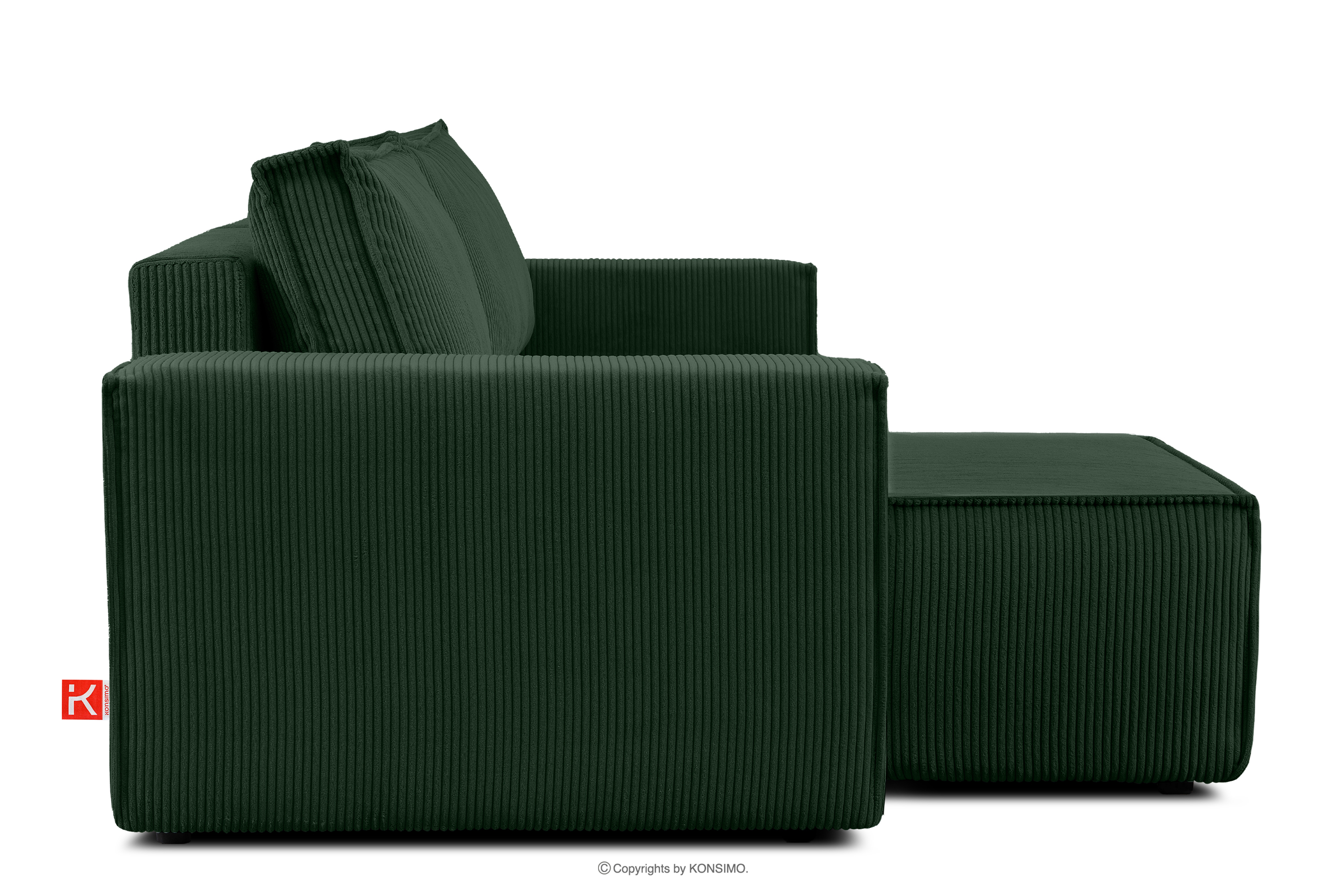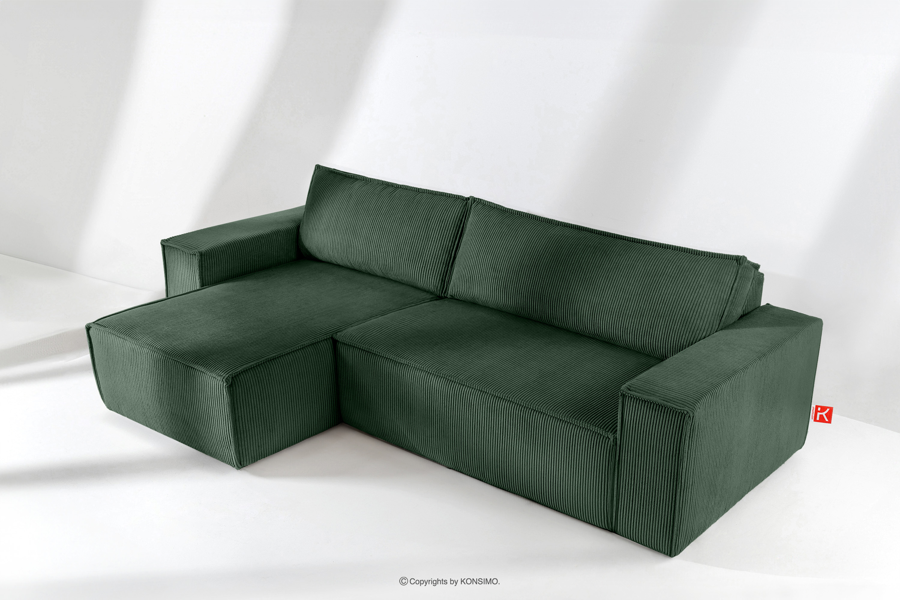 Das universelle Ecksofa mit Schlaffunktion dunkelgrün rechts/links ist ein Möbelstück im modernistischen Stil. Mit seinen charakteristischen breiten Seiten hebt es sich von der Masse der Standardmöbel ab. Doch das ist nur der Anfang seiner außergewöhnlichen Möglichkeiten. Es ist ein universelles Ecksofa, das heißt, es hat die zusätzliche Eigenschaft, dass es selbst entscheiden kann, auf welcher Seite Sie die Liege haben möchten.