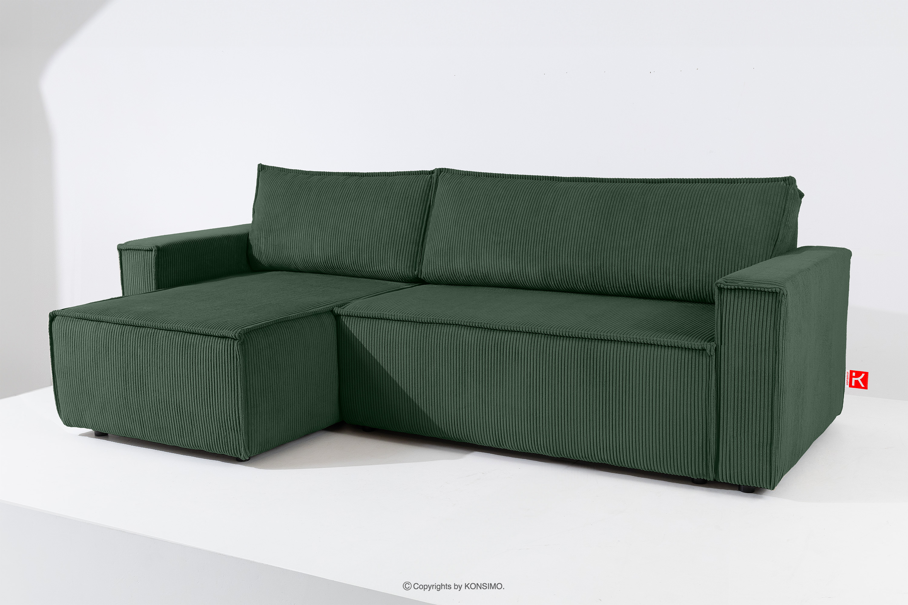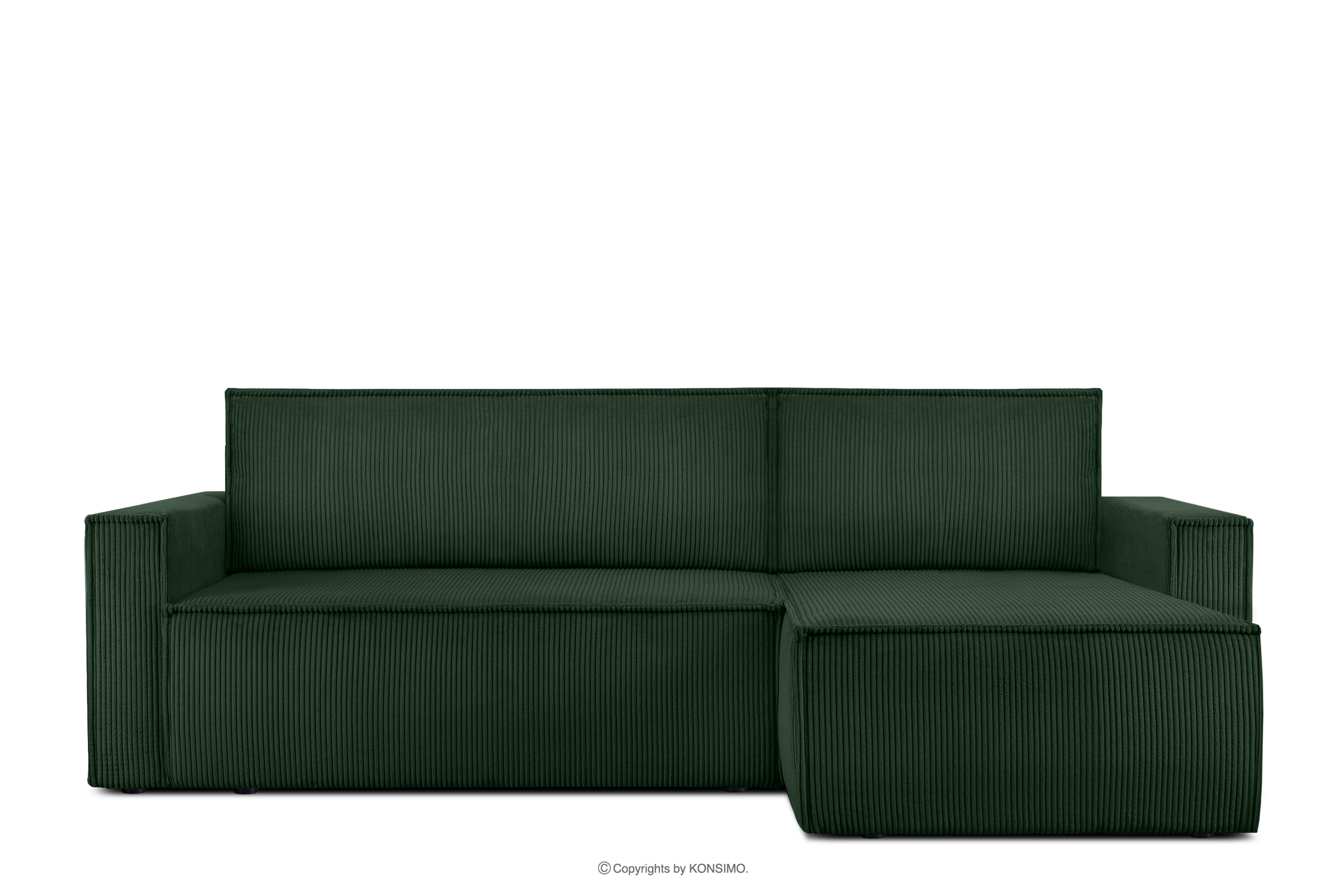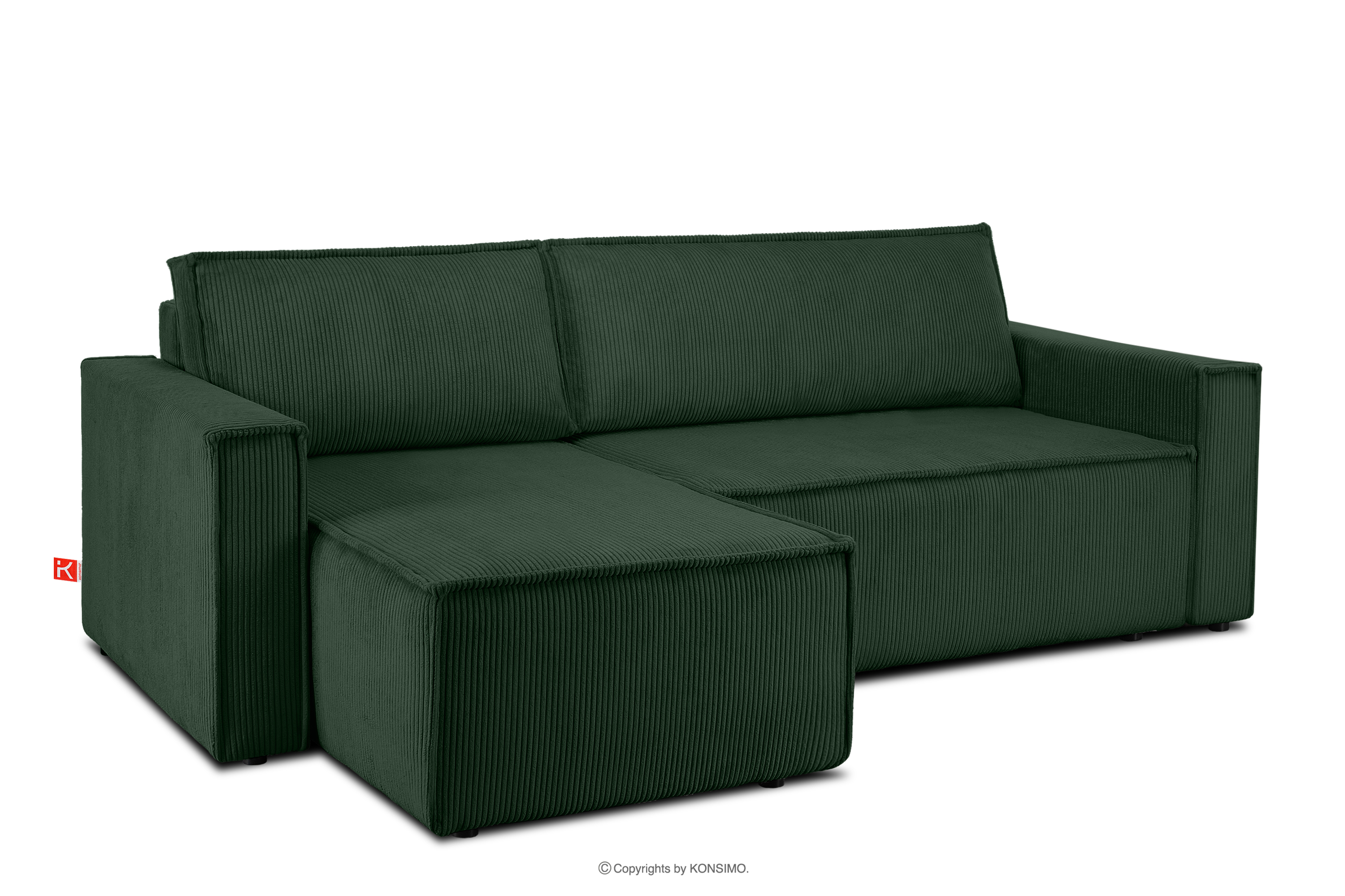 NAPI Großes Ausklappsystem Ecksofa Kordstoff dunkelgrün rechts/links