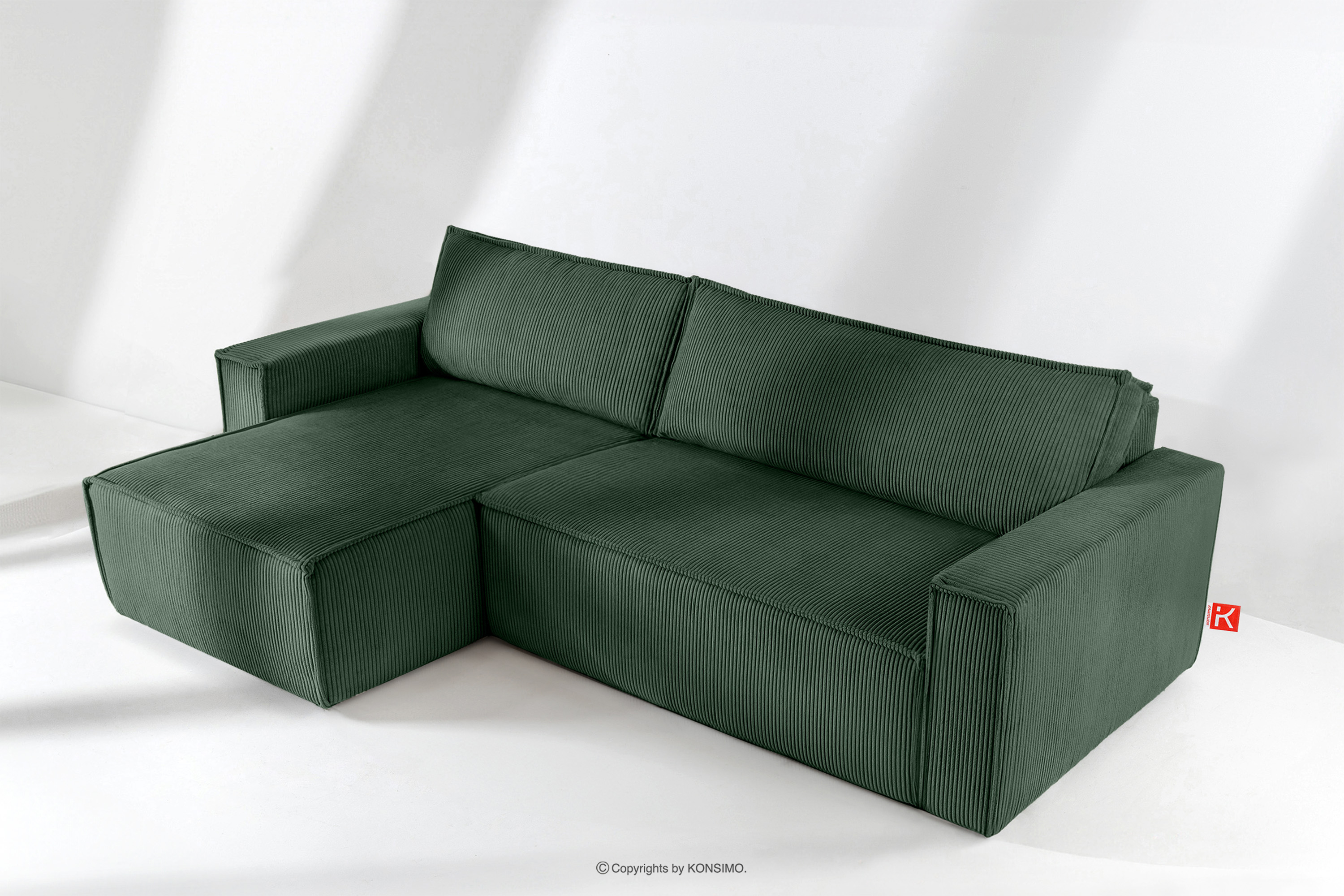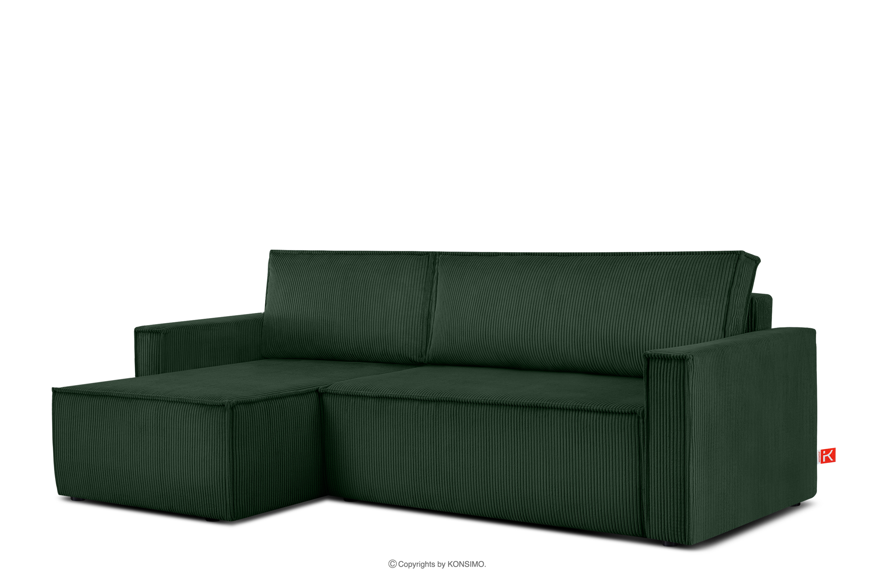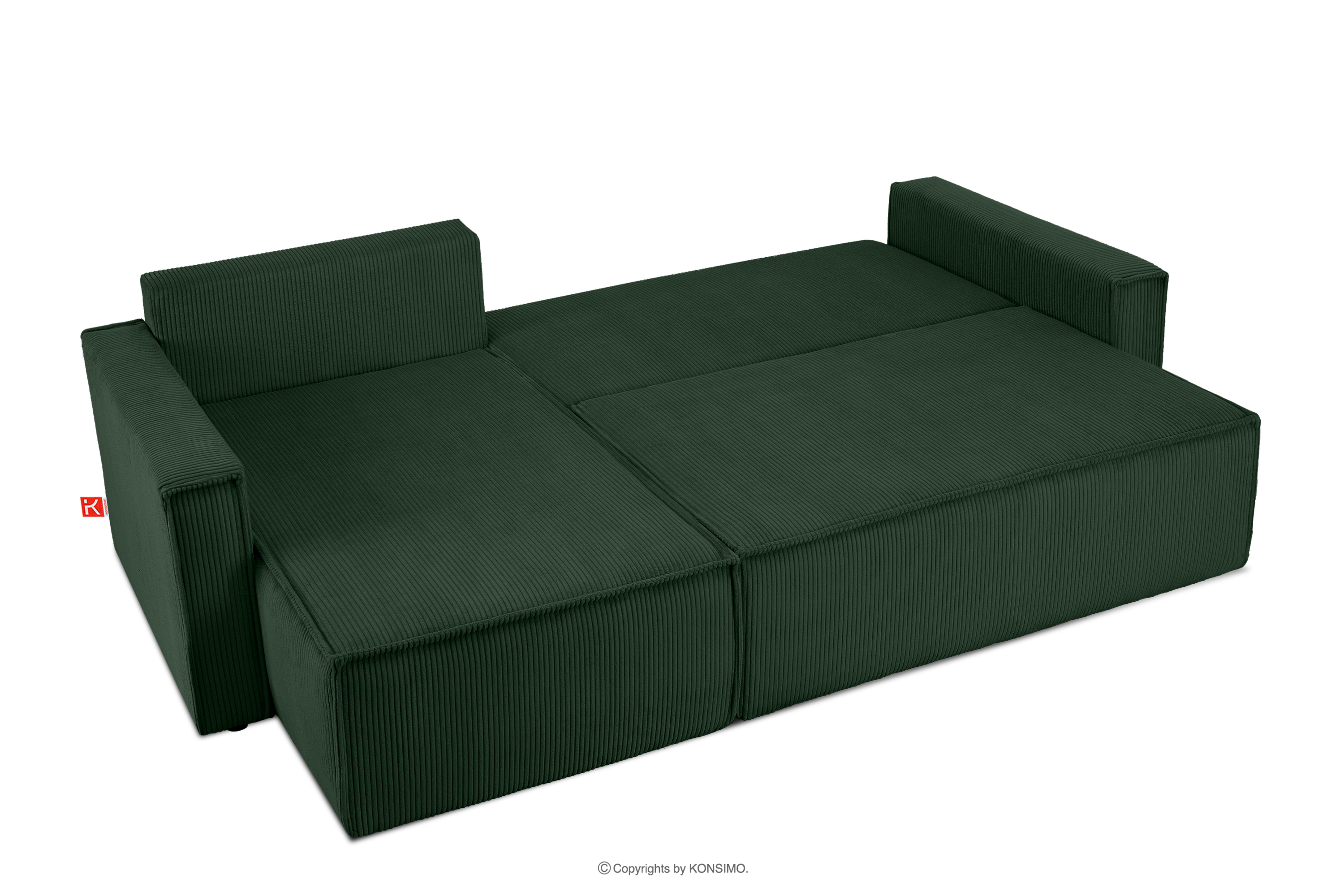 NAPI Großes Ausklappsystem Ecksofa Kordstoff dunkelgrün rechts/links