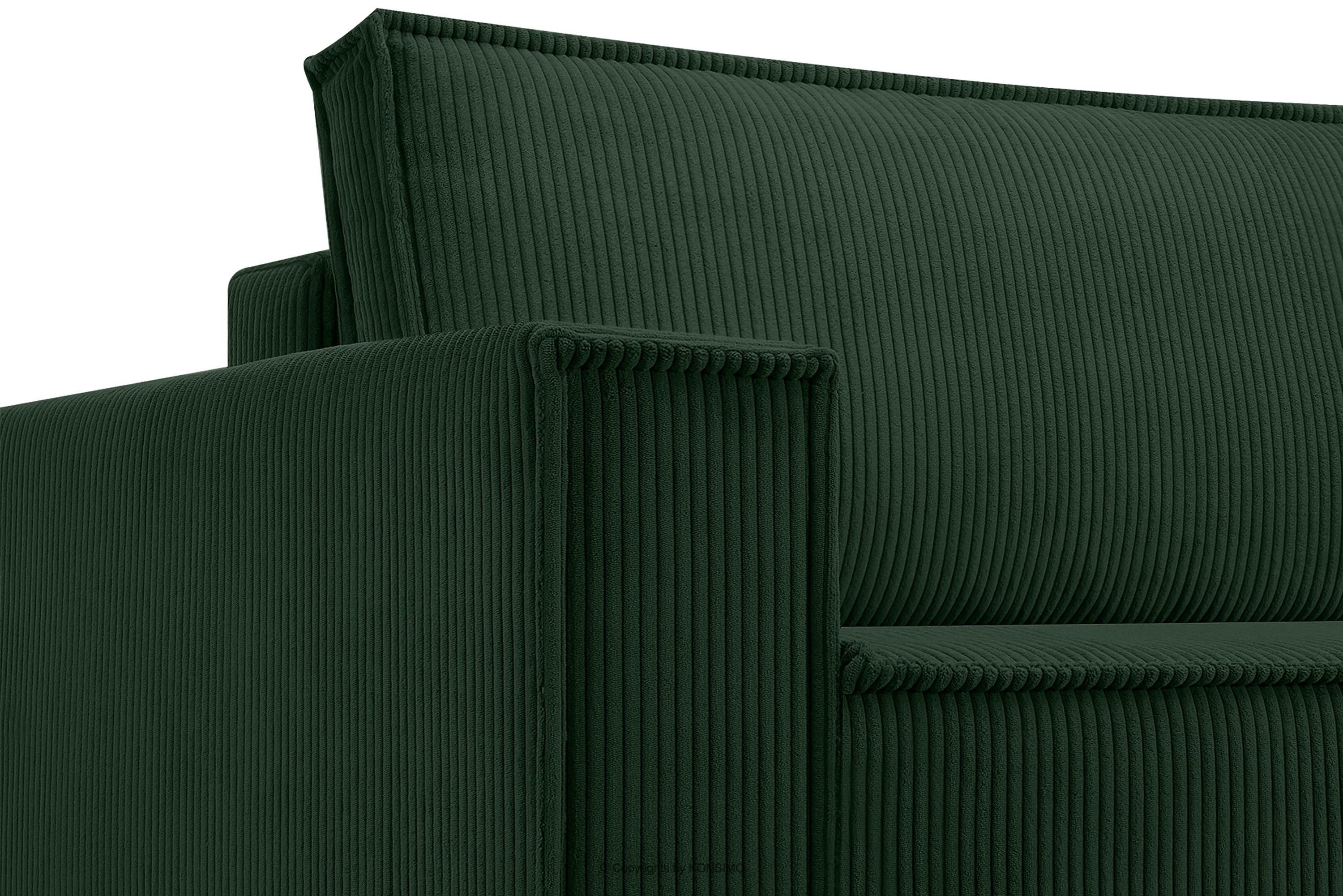 Das große klappbare Ecksofa Kordstoff dunkelgrün rechts/links ist ein Möbelstück im modernistischen Stil. Mit seinen charakteristischen breiten Seiten hebt es sich von der Masse der Standardmöbel ab. Aber das ist nur der Anfang seiner außergewöhnlichen Möglichkeiten. Es ist ein universelles Ecksofa, das heißt, es hat die zusätzliche Eigenschaft, dass es selbst entscheiden kann, auf welcher Seite Sie die Liege haben möchten.